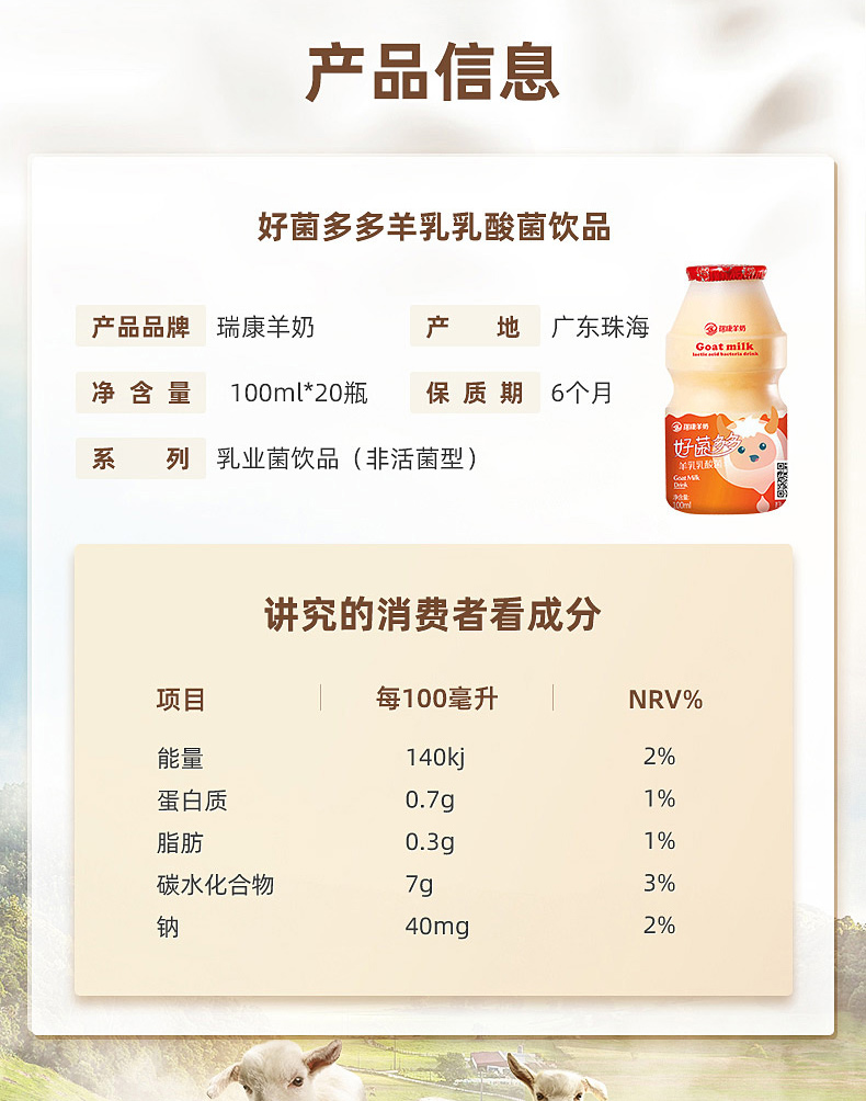 商品名称:瑞康羊奶好菌多多羊乳乳酸菌