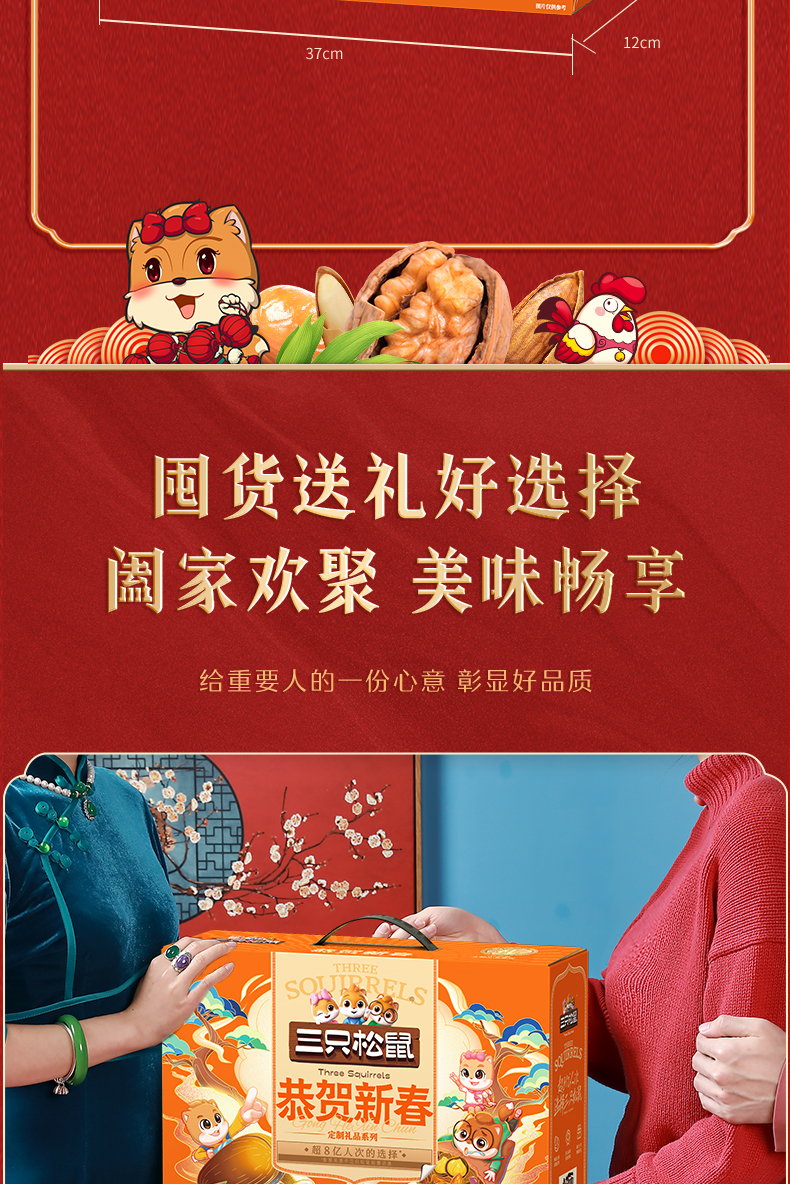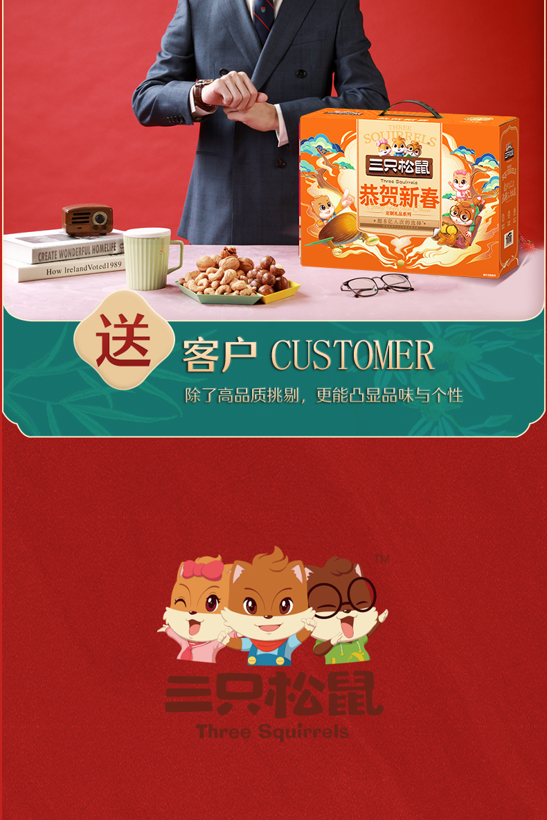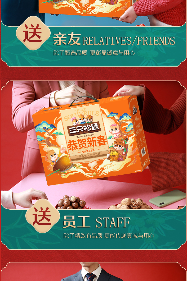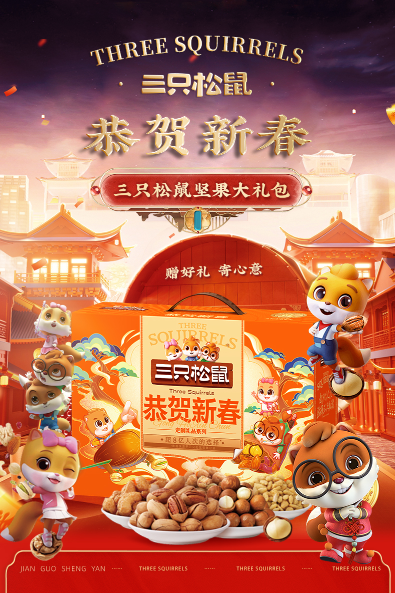 三只松鼠恭贺新春坚果零食礼盒1260g+480ml