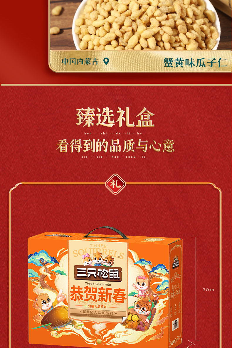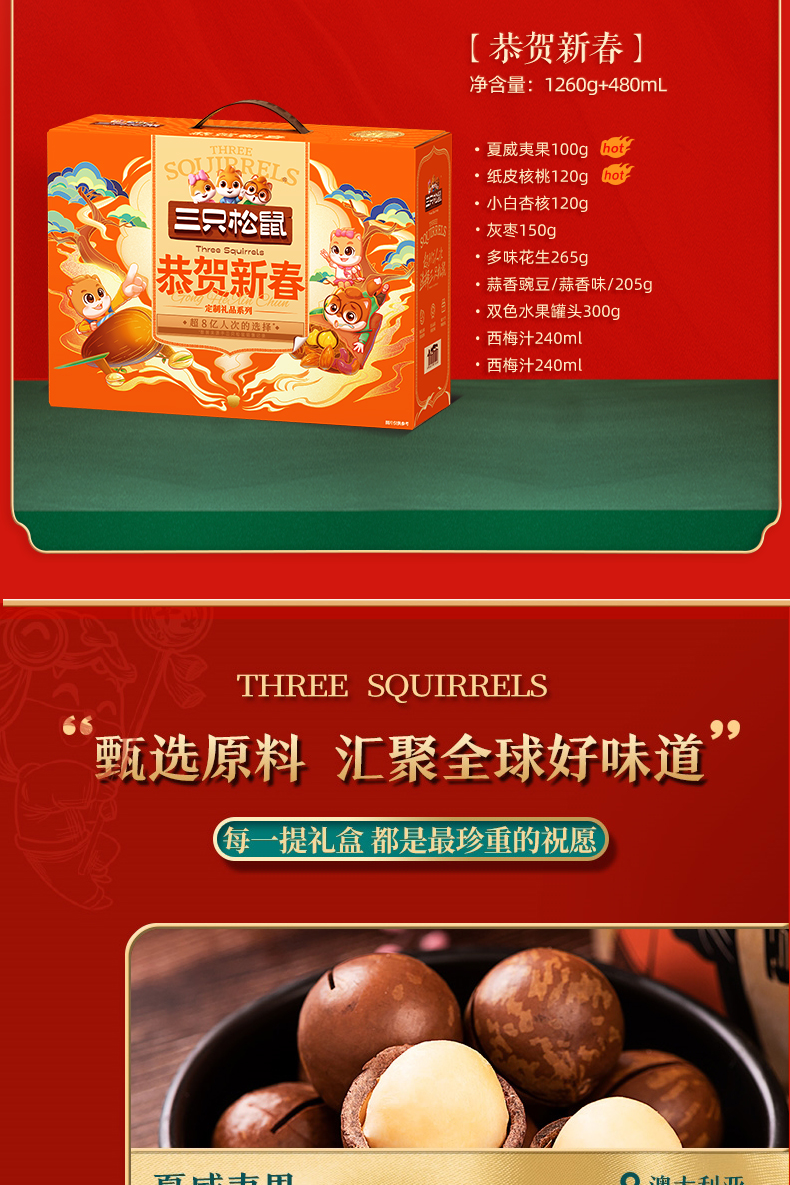 商品名称:三只松鼠恭贺新春坚果零食礼盒1260g+480ml