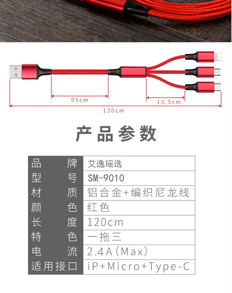 商品名称:艾逸瑶选逸充三合一数据线SM-9010