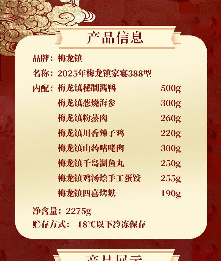 商品名称:【京东/顺丰配送】梅龙镇2025年家宴速冻食品套餐388型2275g