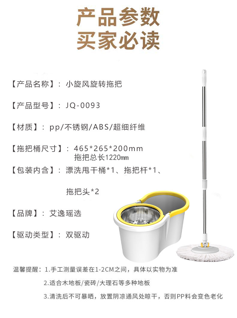 商品名称:艾逸瑶选小旋风旋转拖把套装JQ-0093