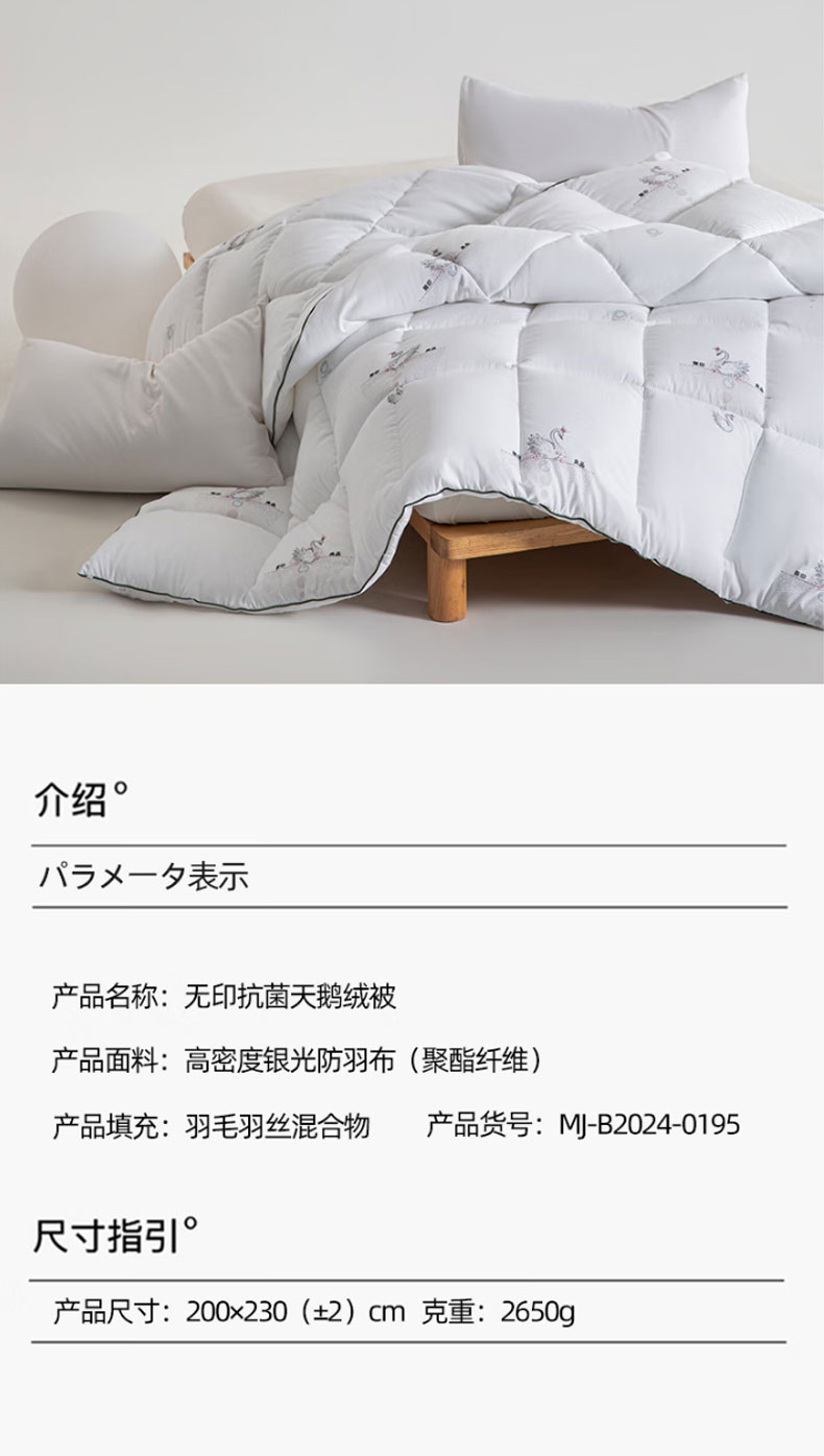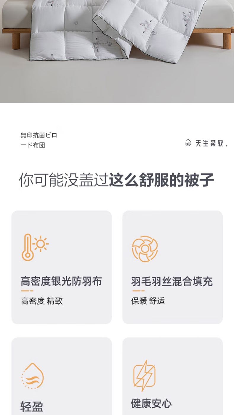 商品名称:无印良品抗菌天鹅绒被200*230cm 2650g