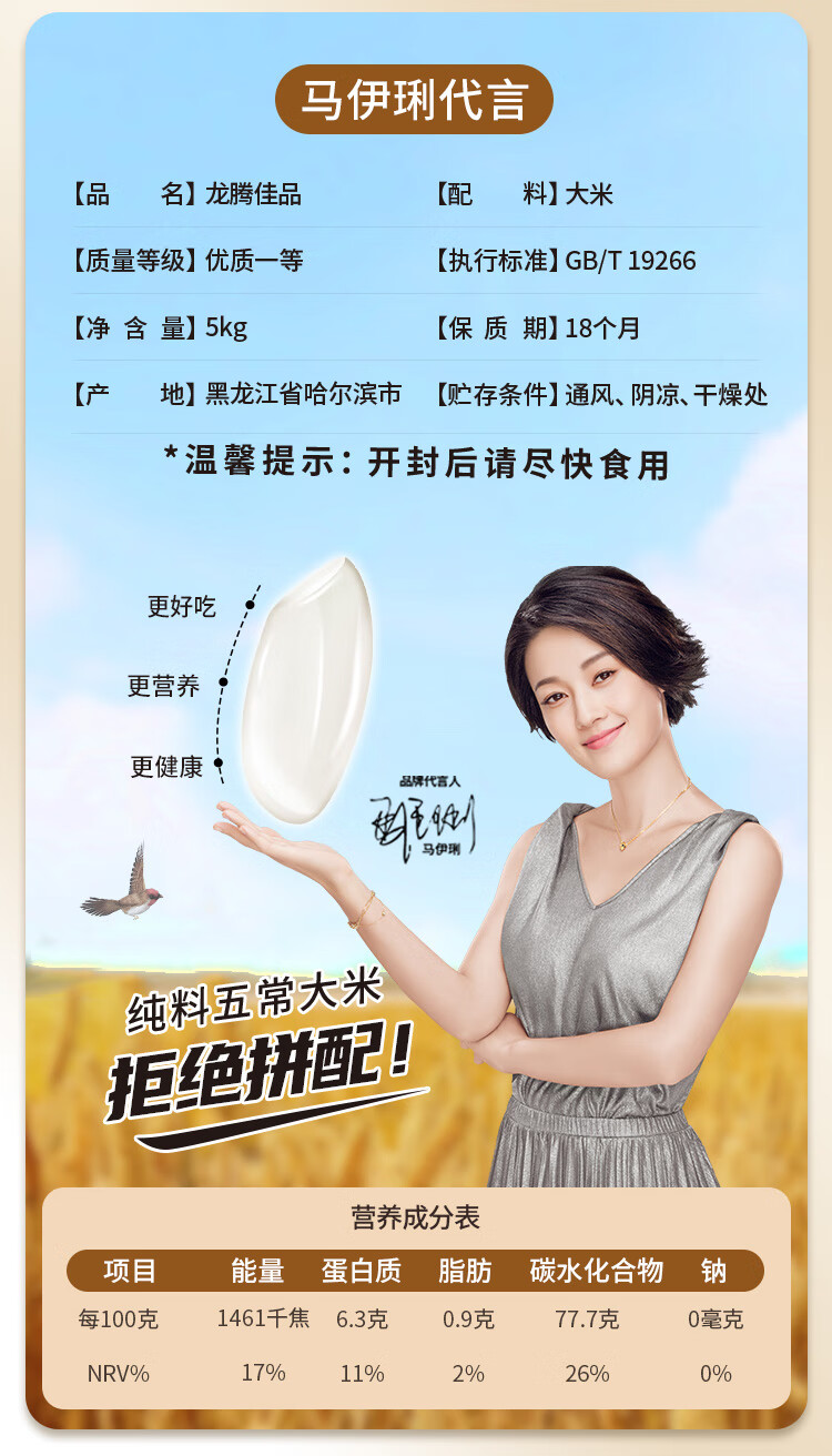 商品名称:龙稻龙腾佳品五常大米5kg