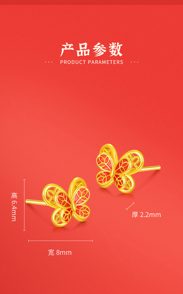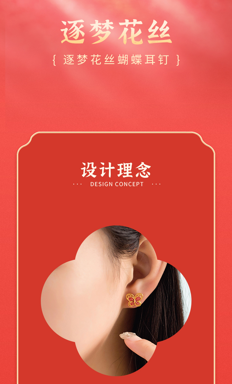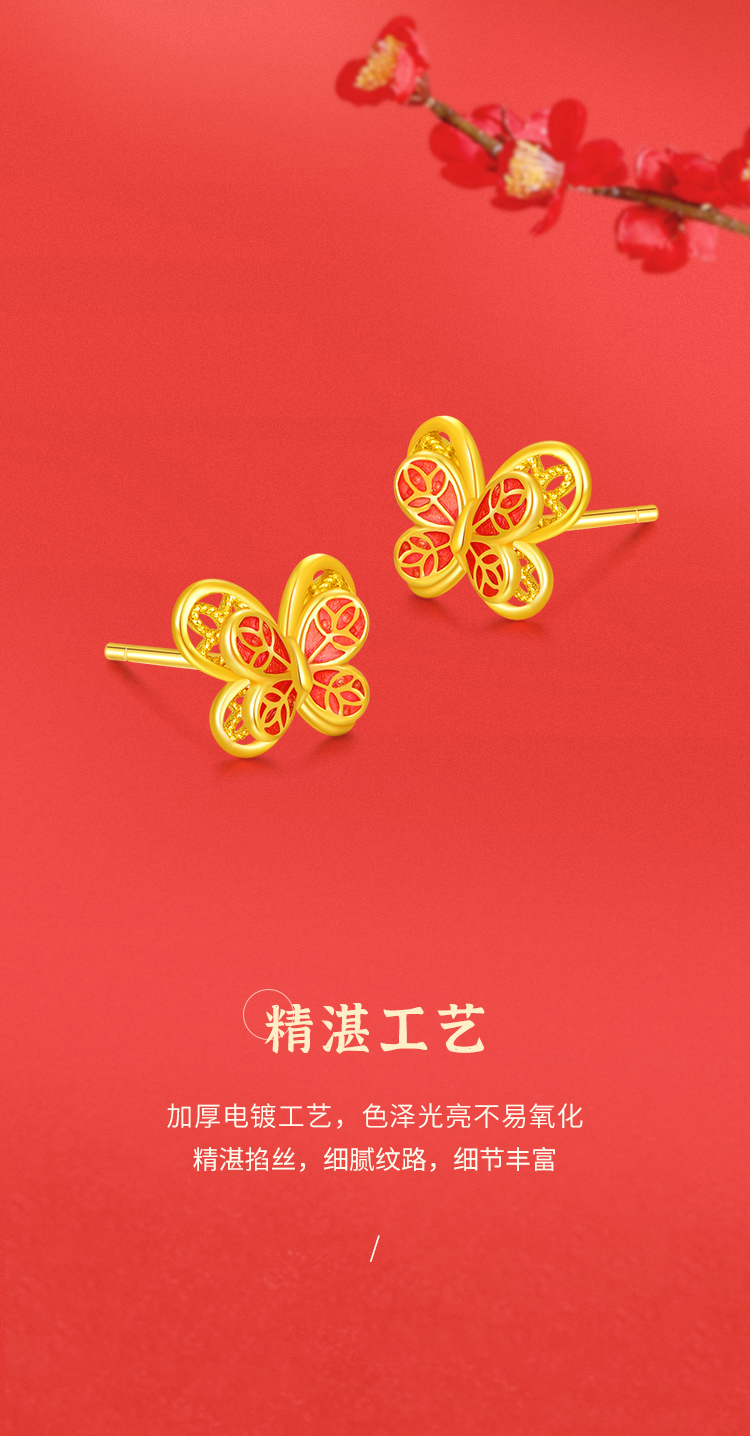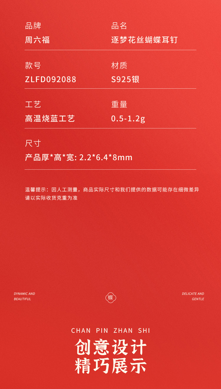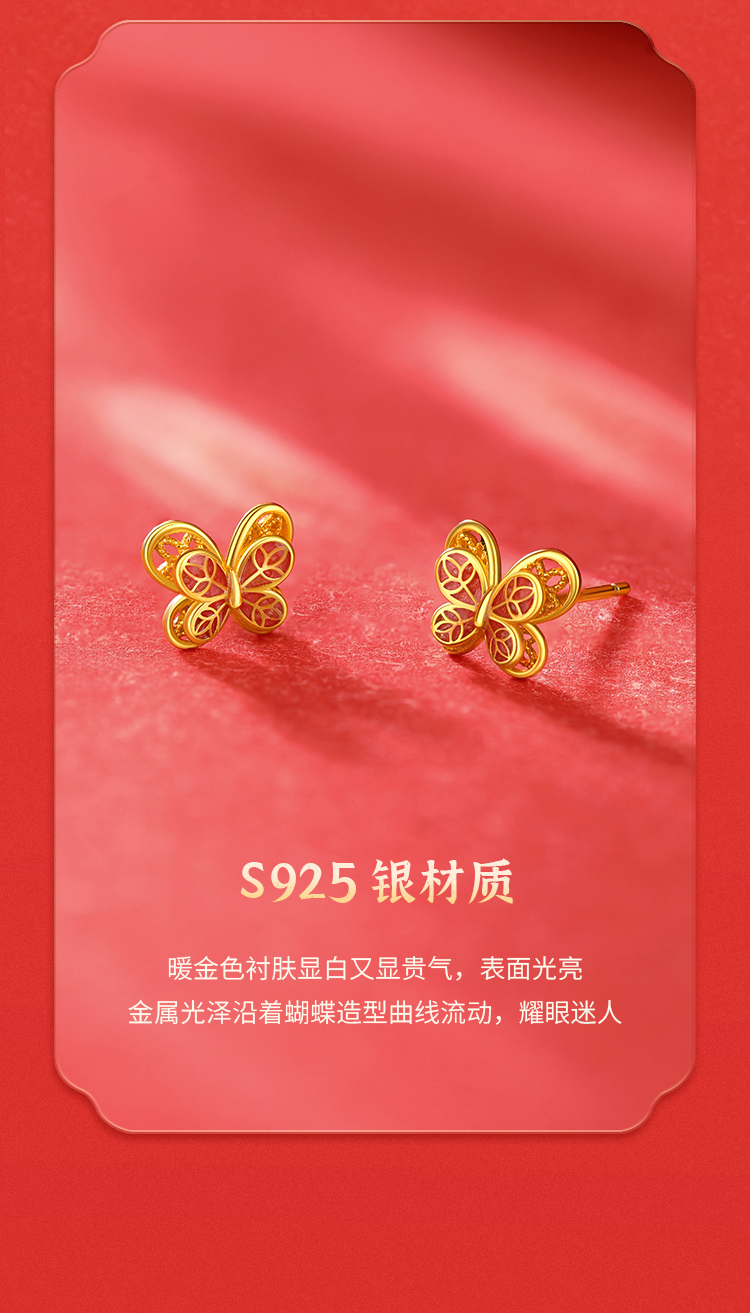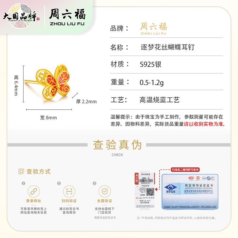 商品名称:周六福S925银逐梦花丝蝴蝶耳钉ZLFD092088