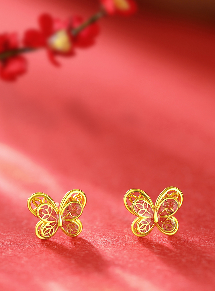 周六福S925银逐梦花丝蝴蝶耳钉ZLFD092088