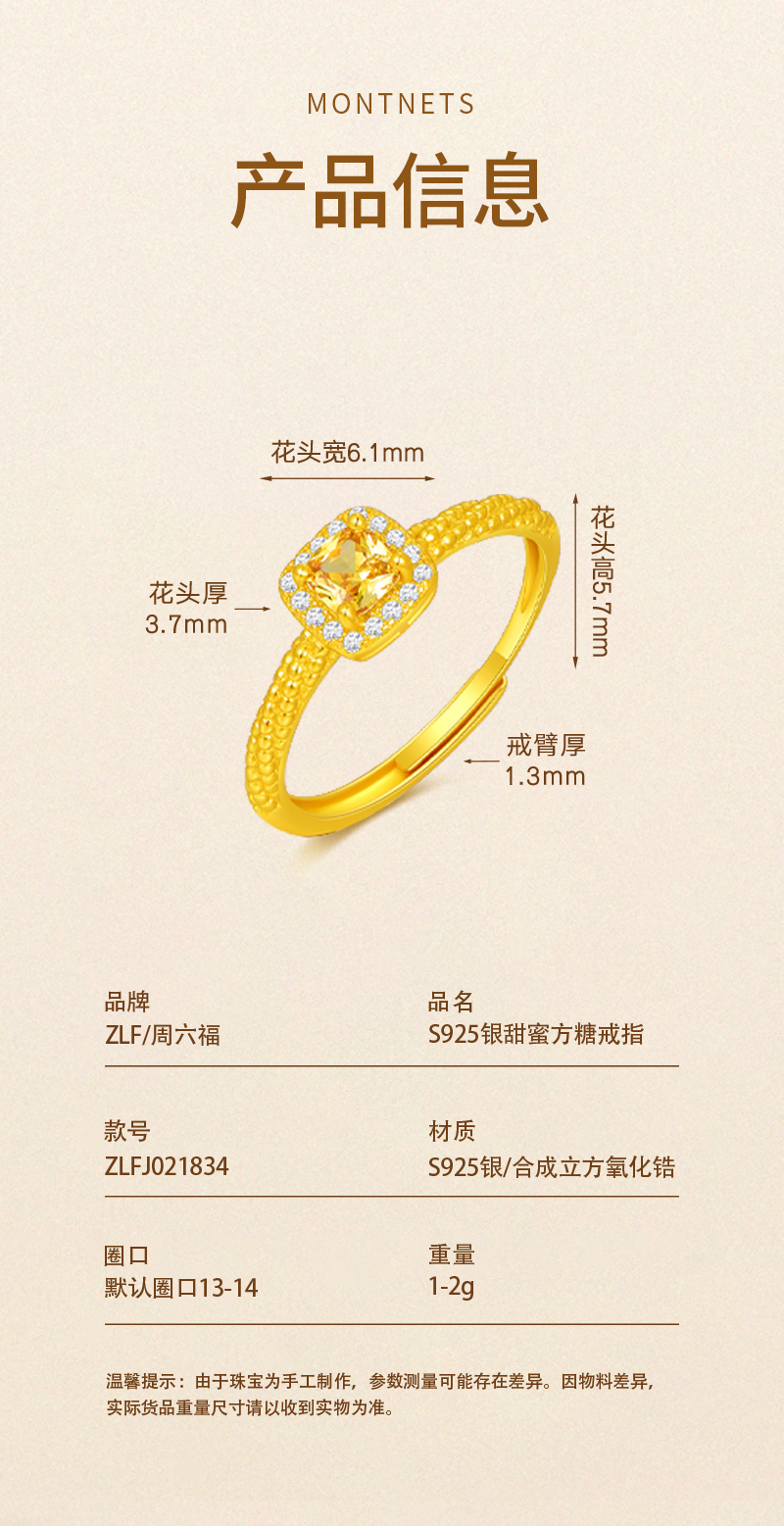 商品名称:周六福S925银甜蜜方糖戒指ZLFJ021834