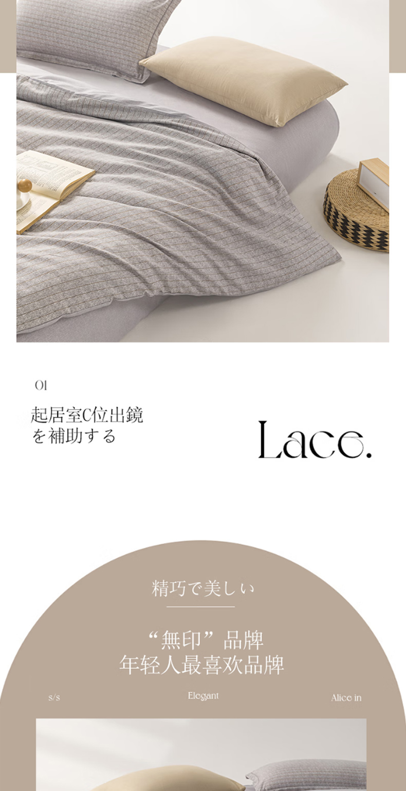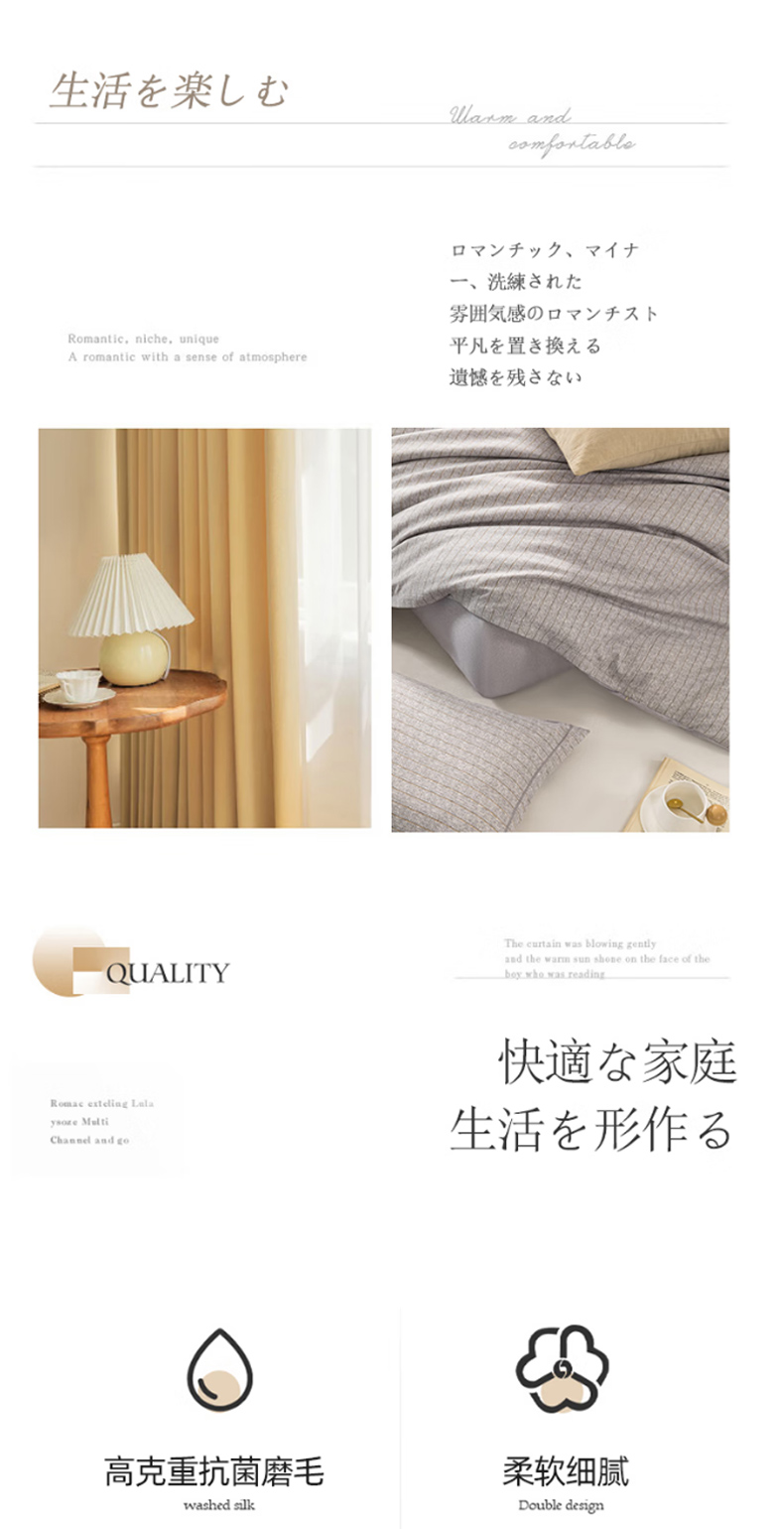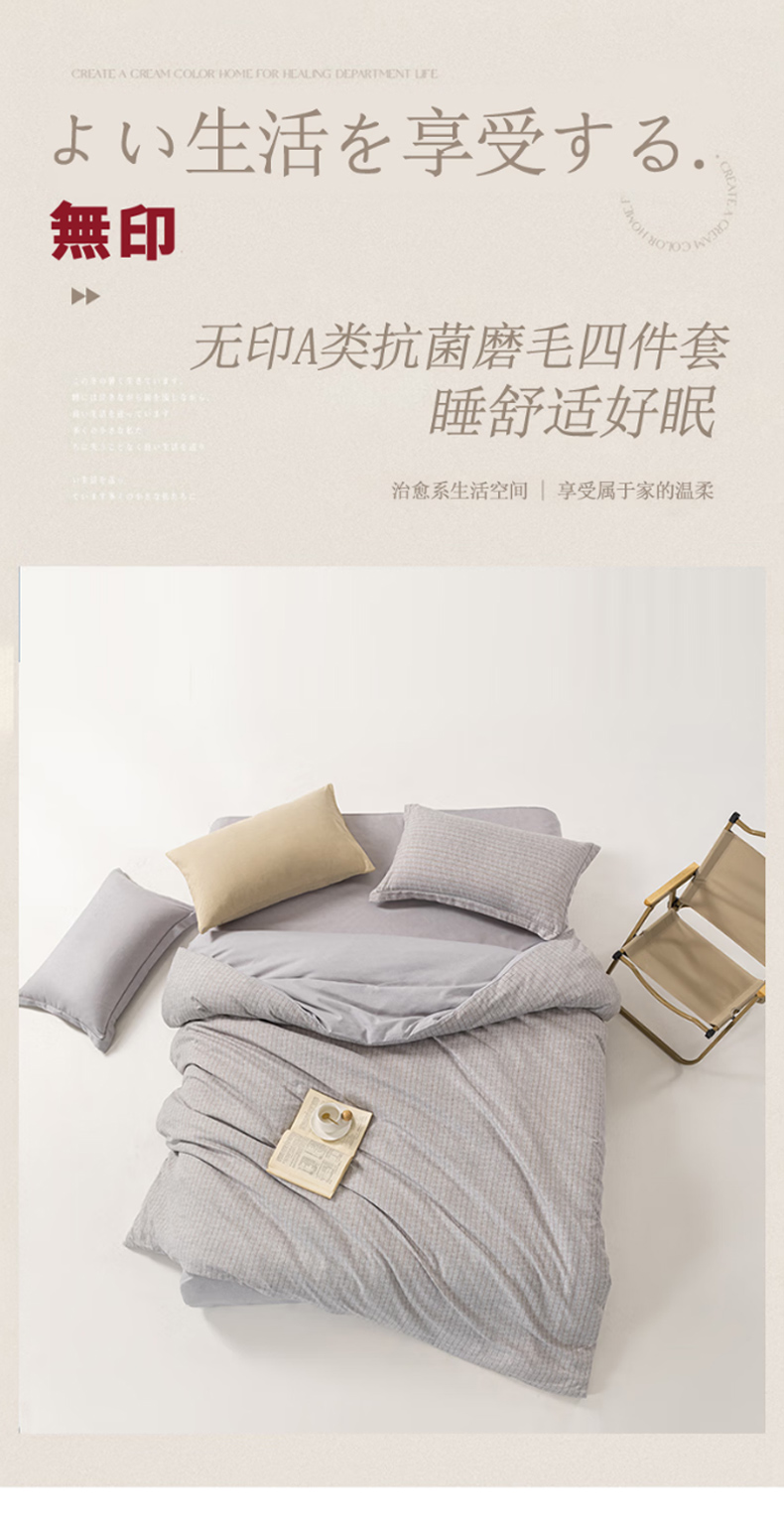 无印良品A类抗菌磨毛床品四件套200*230cm
