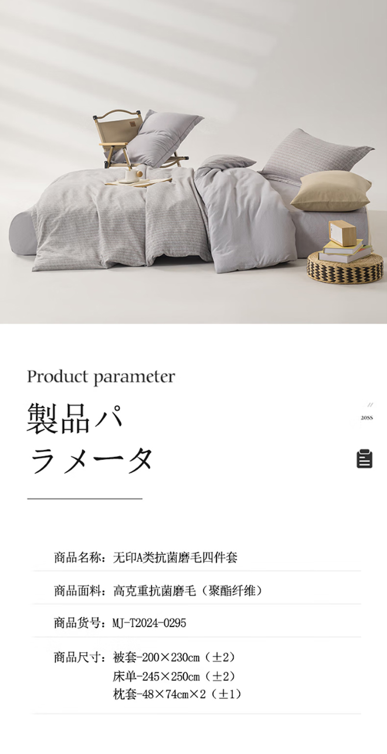 商品名称:无印良品A类抗菌磨毛床品四件套200*230cm