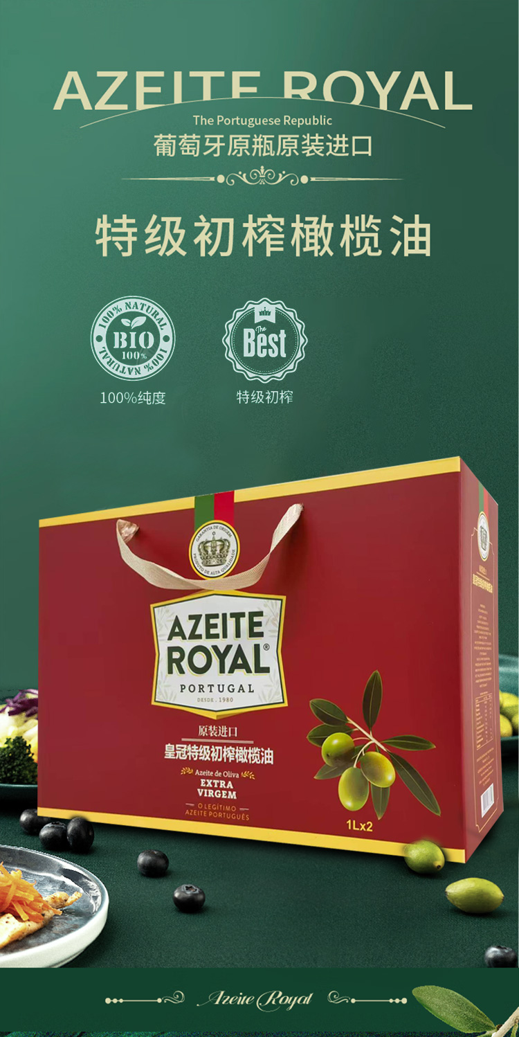 商品名称:【京东/德邦配送】AZEITE ROYAL/皇冠特级初榨橄榄油礼盒1L*2桶