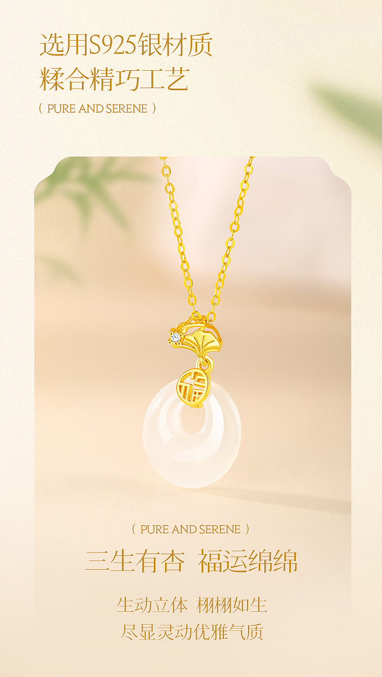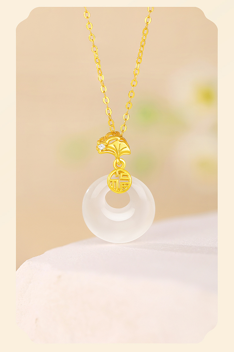 周六福S925银杏运平安扣玉髓吊坠ZLFJ062102