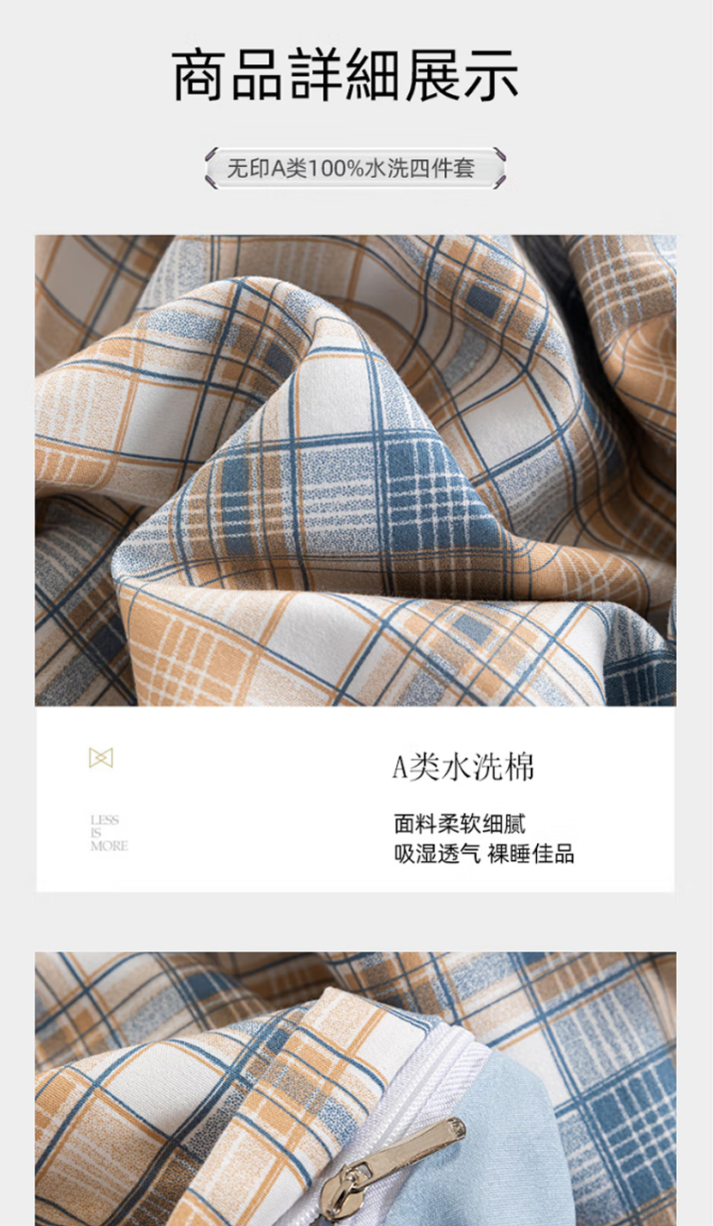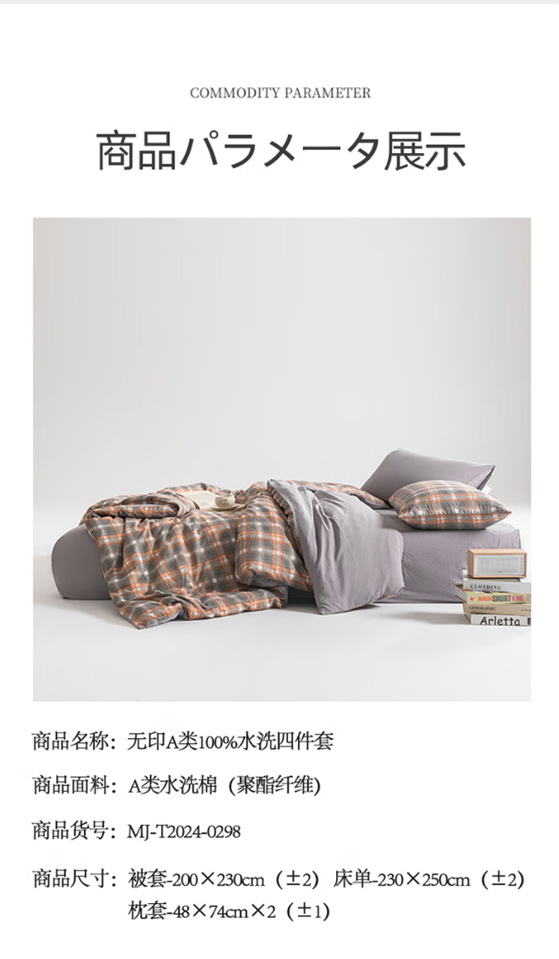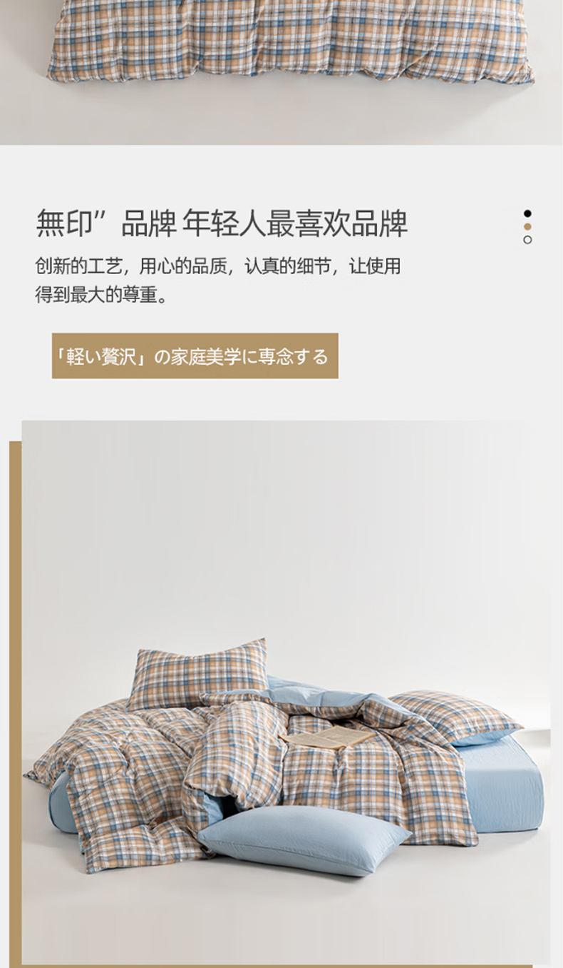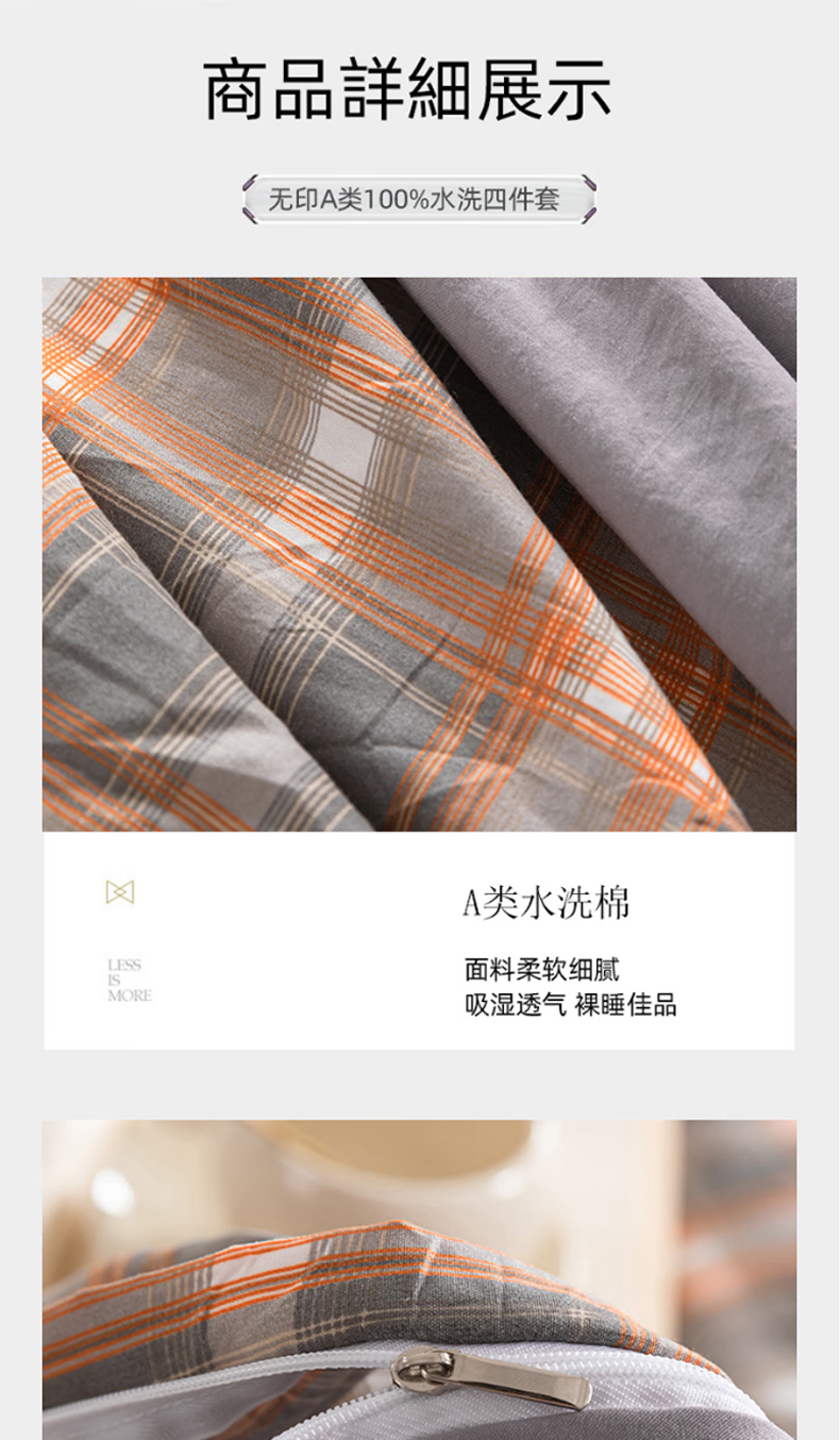 商品名称:无印良品A类100%水洗床品四件套200*230cm