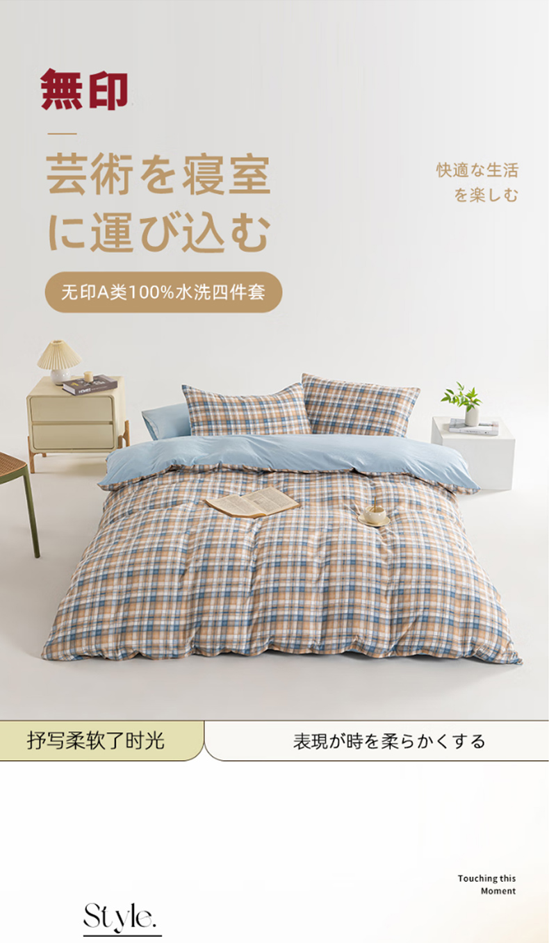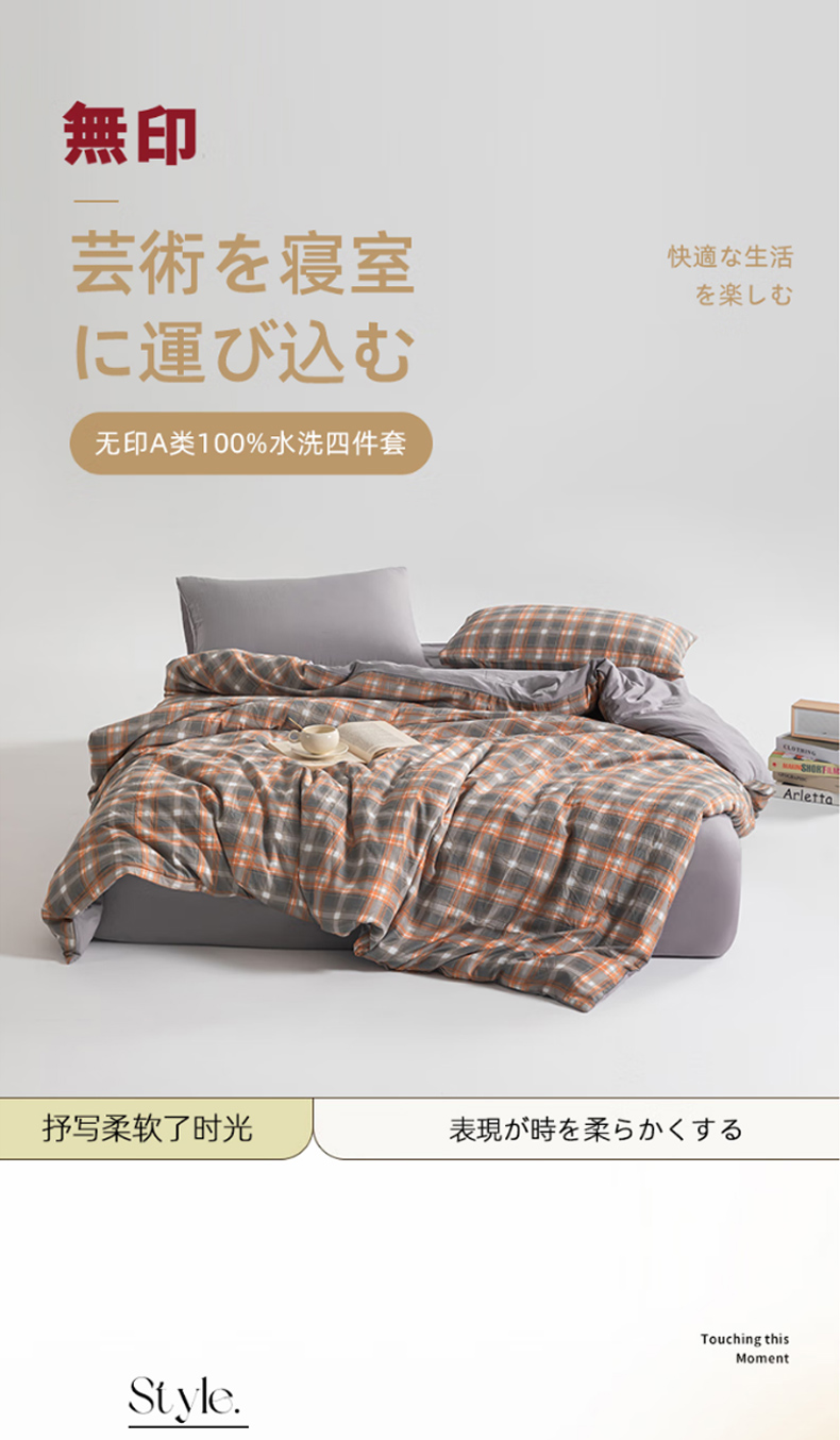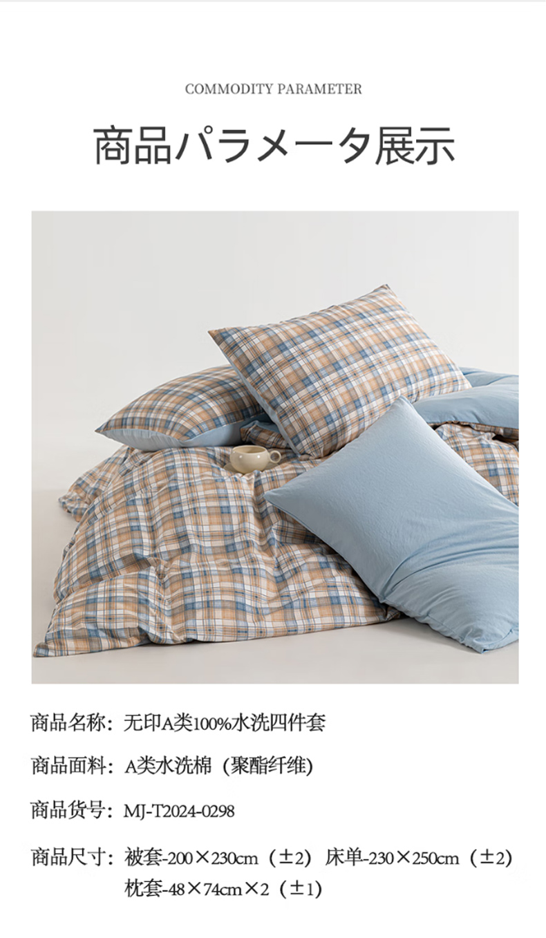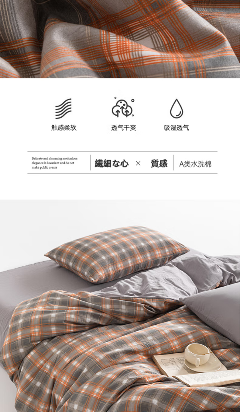 商品名称:无印良品A类100%水洗床品四件套200*230cm
