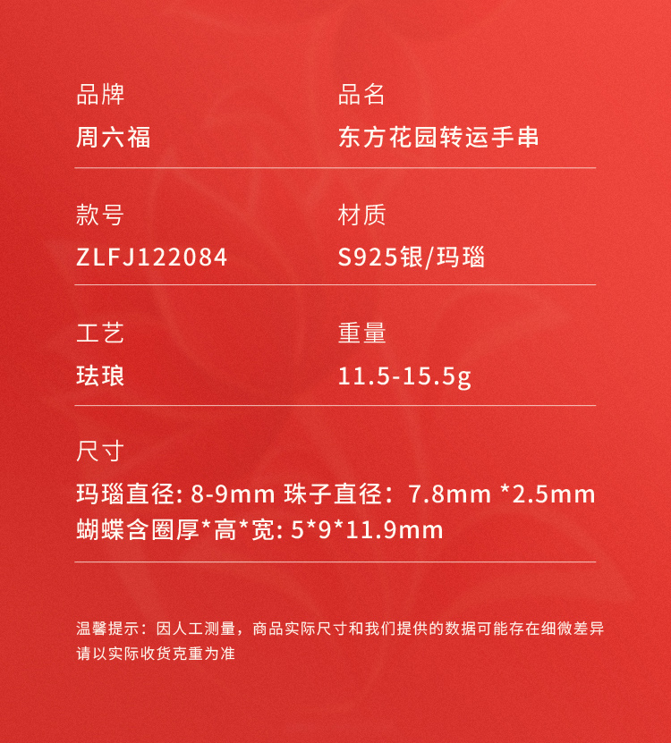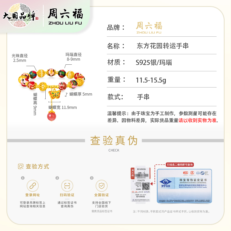 商品名称:周六福S925银东方花园银玛瑙转运手串ZLFJ122084