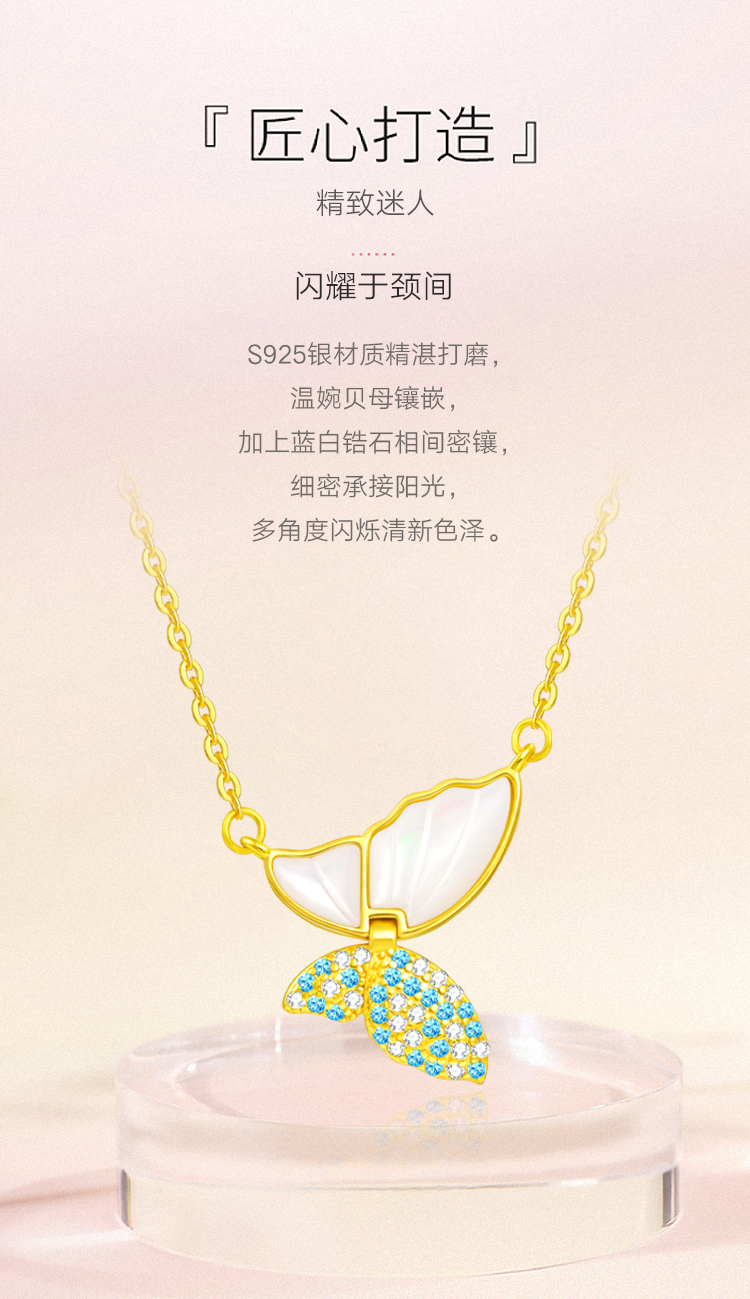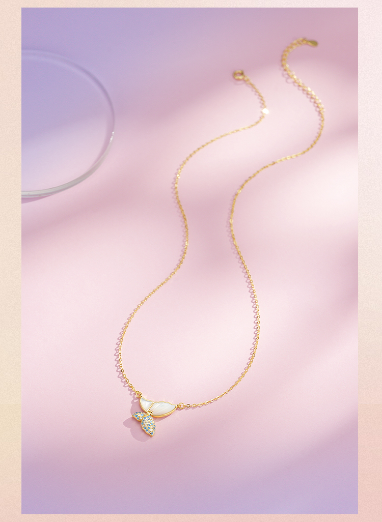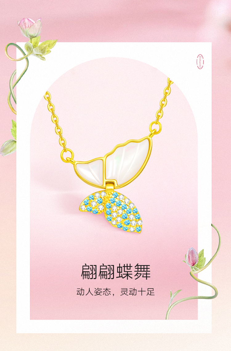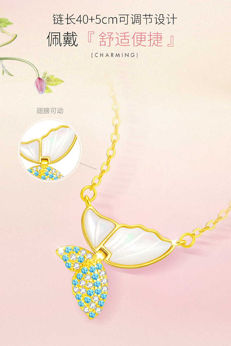 周六福S925银翩翩蝶舞母贝项链ZLFJ061734