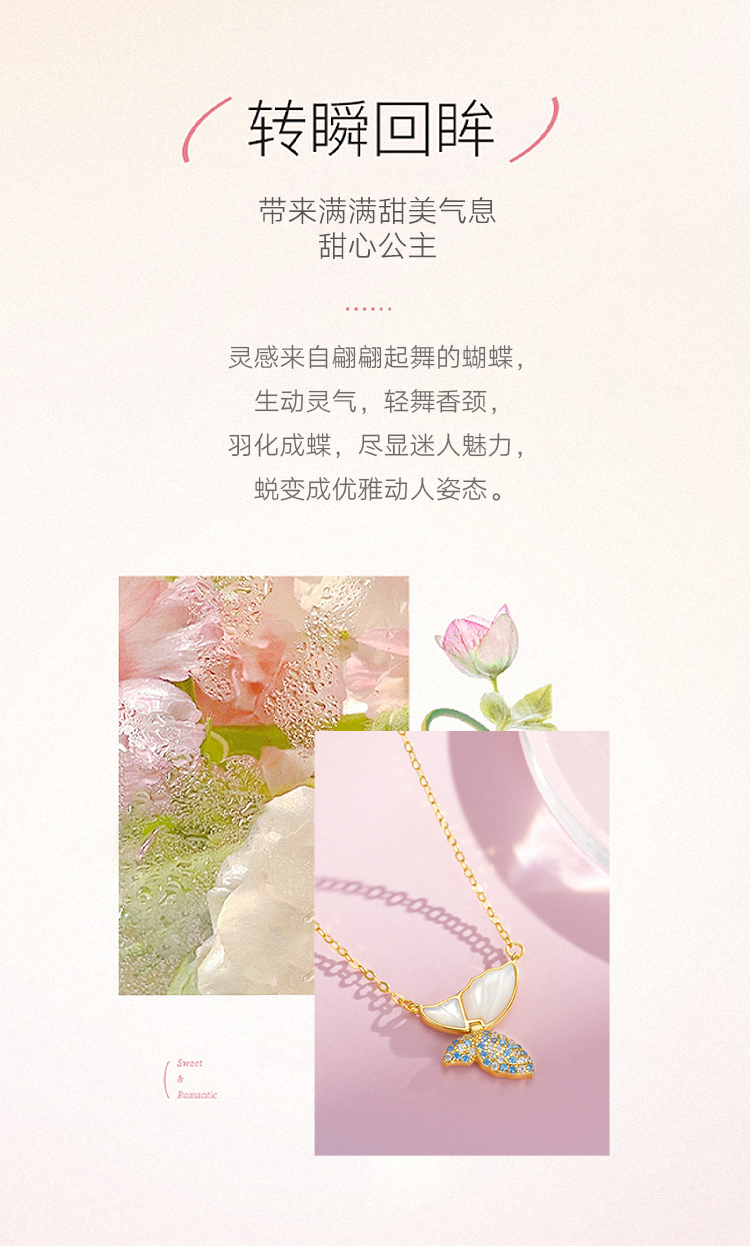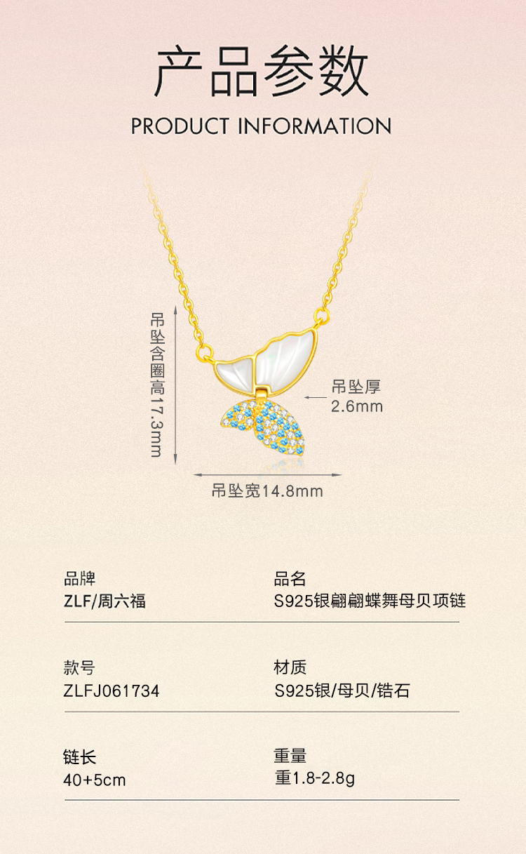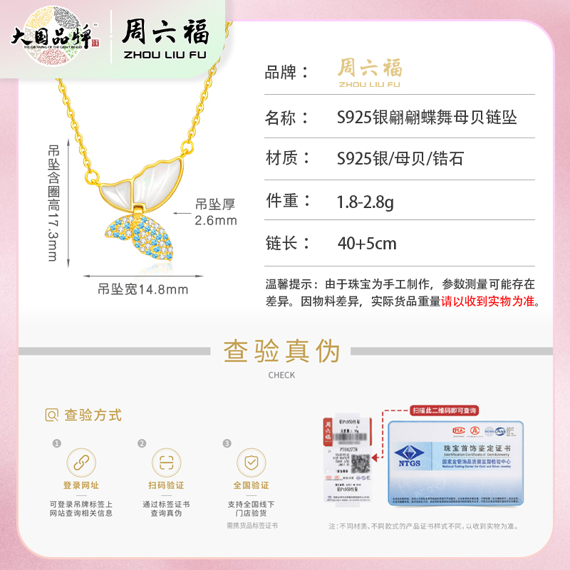 商品名称:周六福S925银翩翩蝶舞母贝项链ZLFJ061734