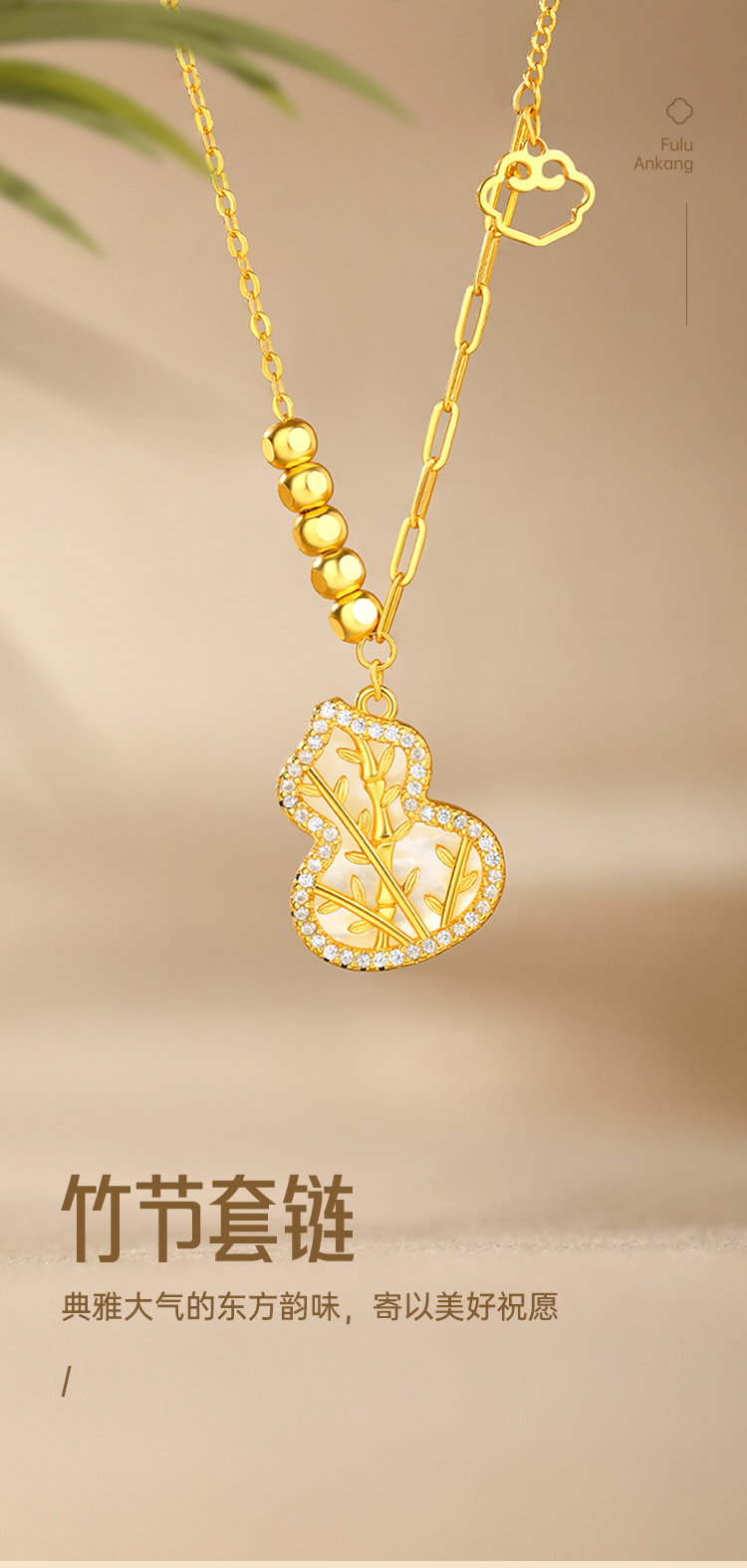 周六福S925银竹节白贝套链ZLFJ062094