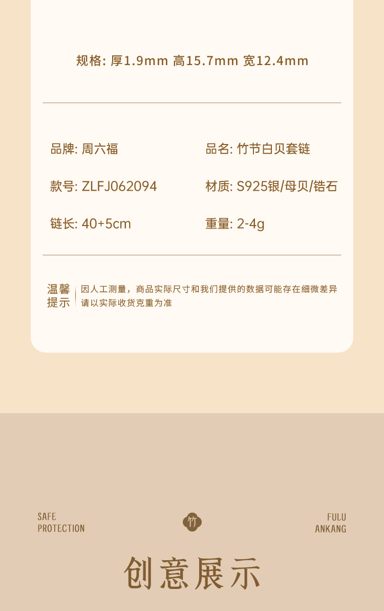 商品名称:周六福S925银竹节白贝套链ZLFJ062094