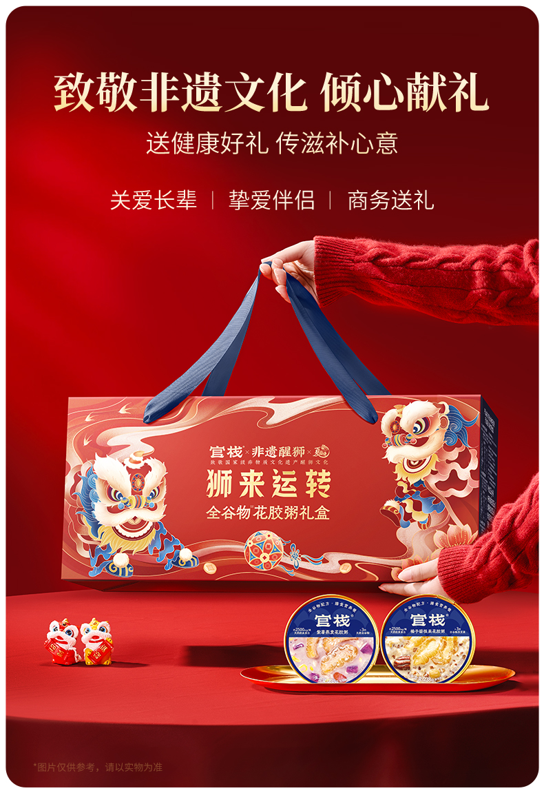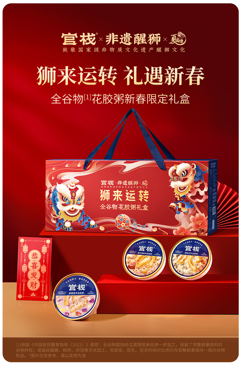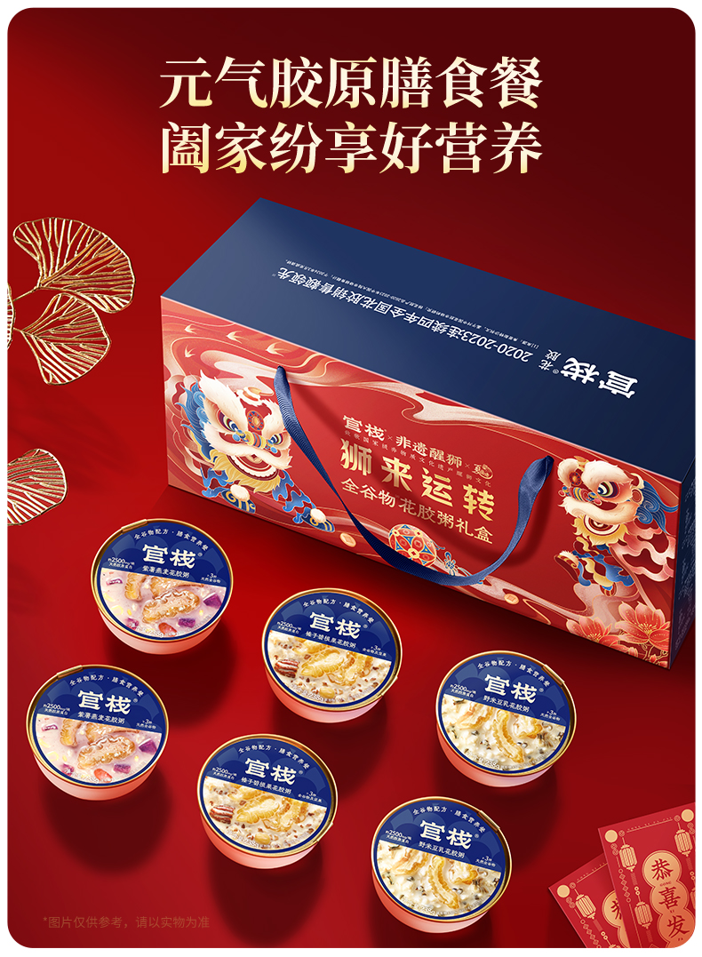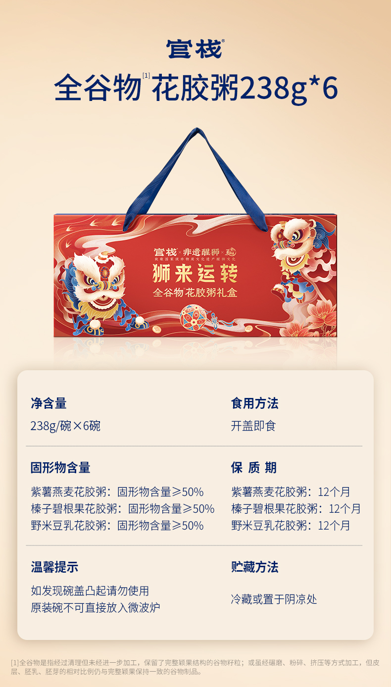 商品名称:【顺丰配送】官栈x非遗醒狮狮来运转全谷物花胶粥礼盒1428g