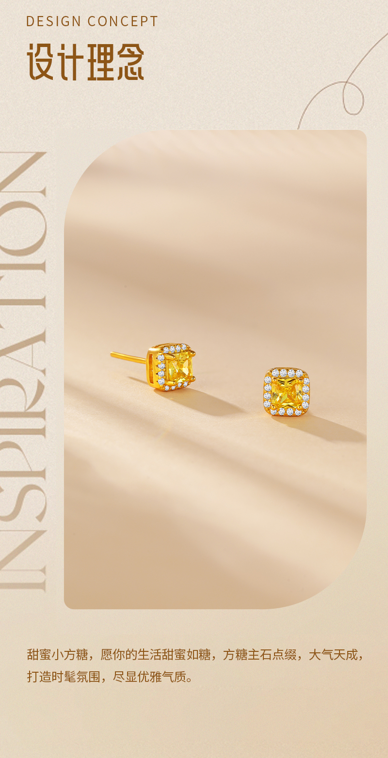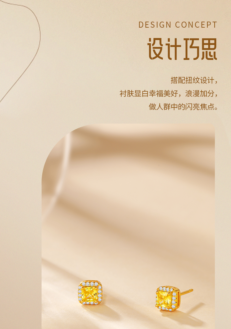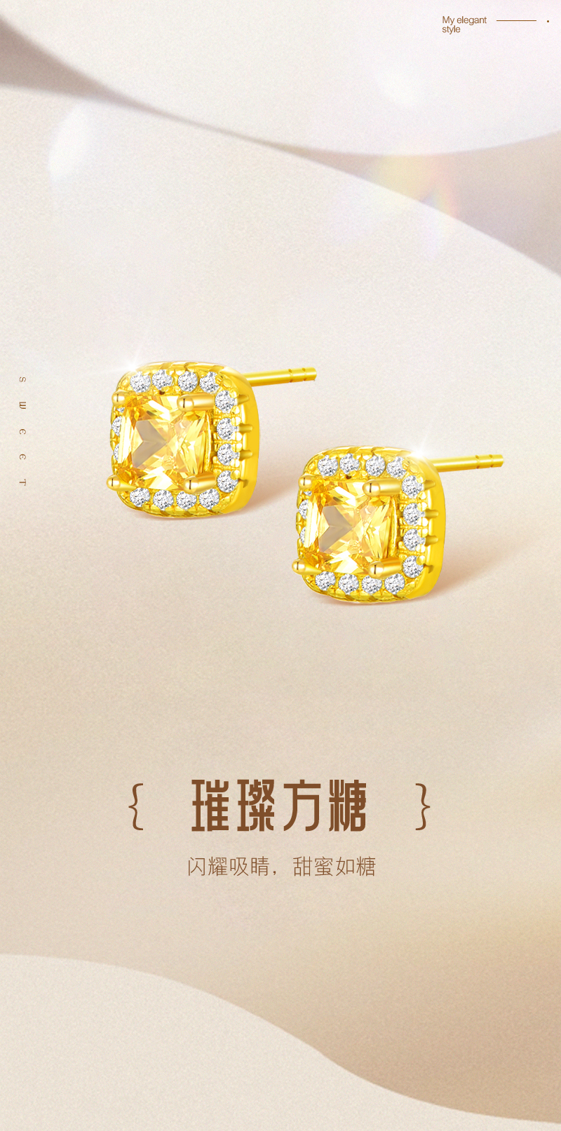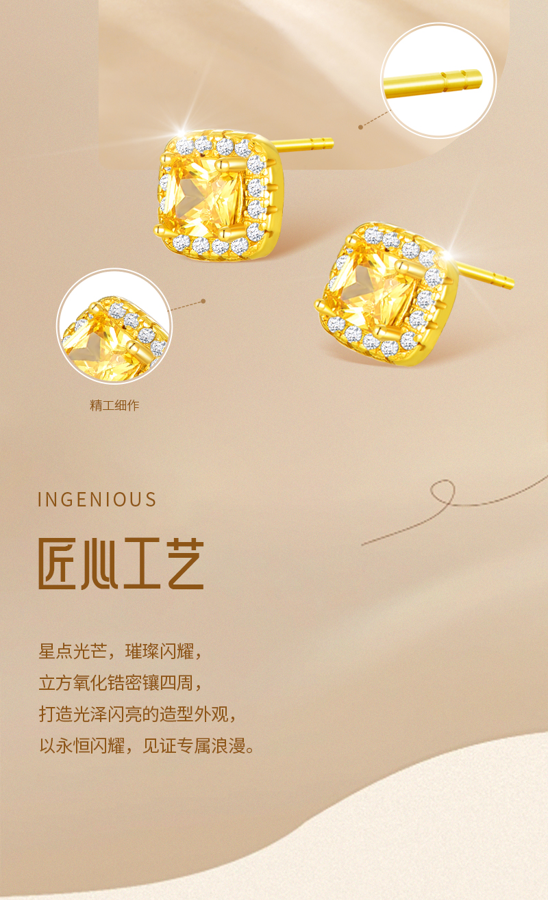 周六福S925银璀璨小方糖耳钉ZLFJ091835