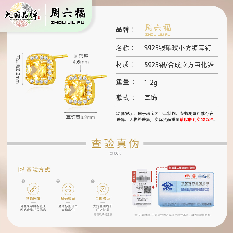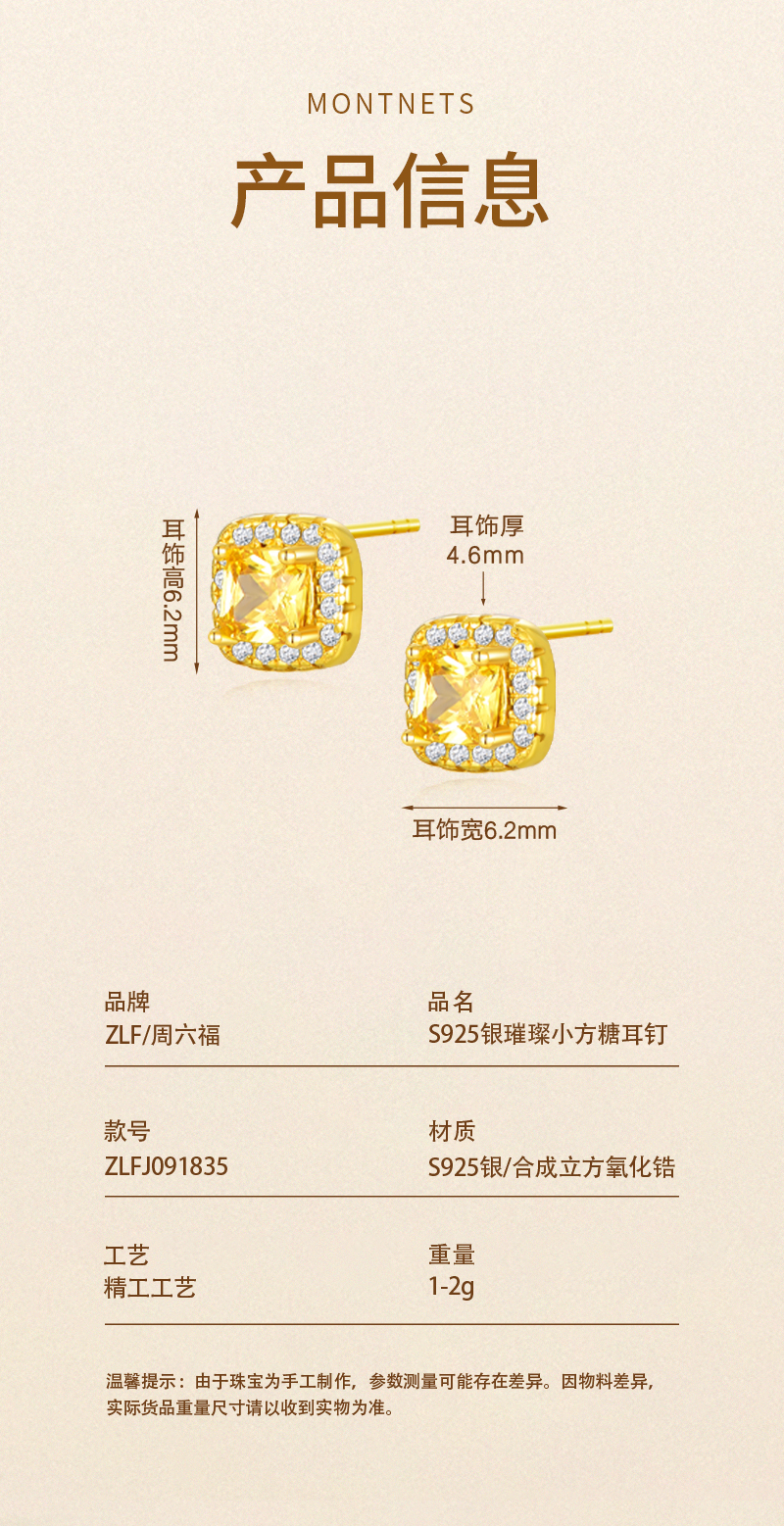商品名称:周六福S925银璀璨小方糖耳钉ZLFJ091835