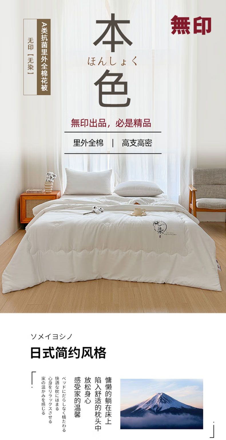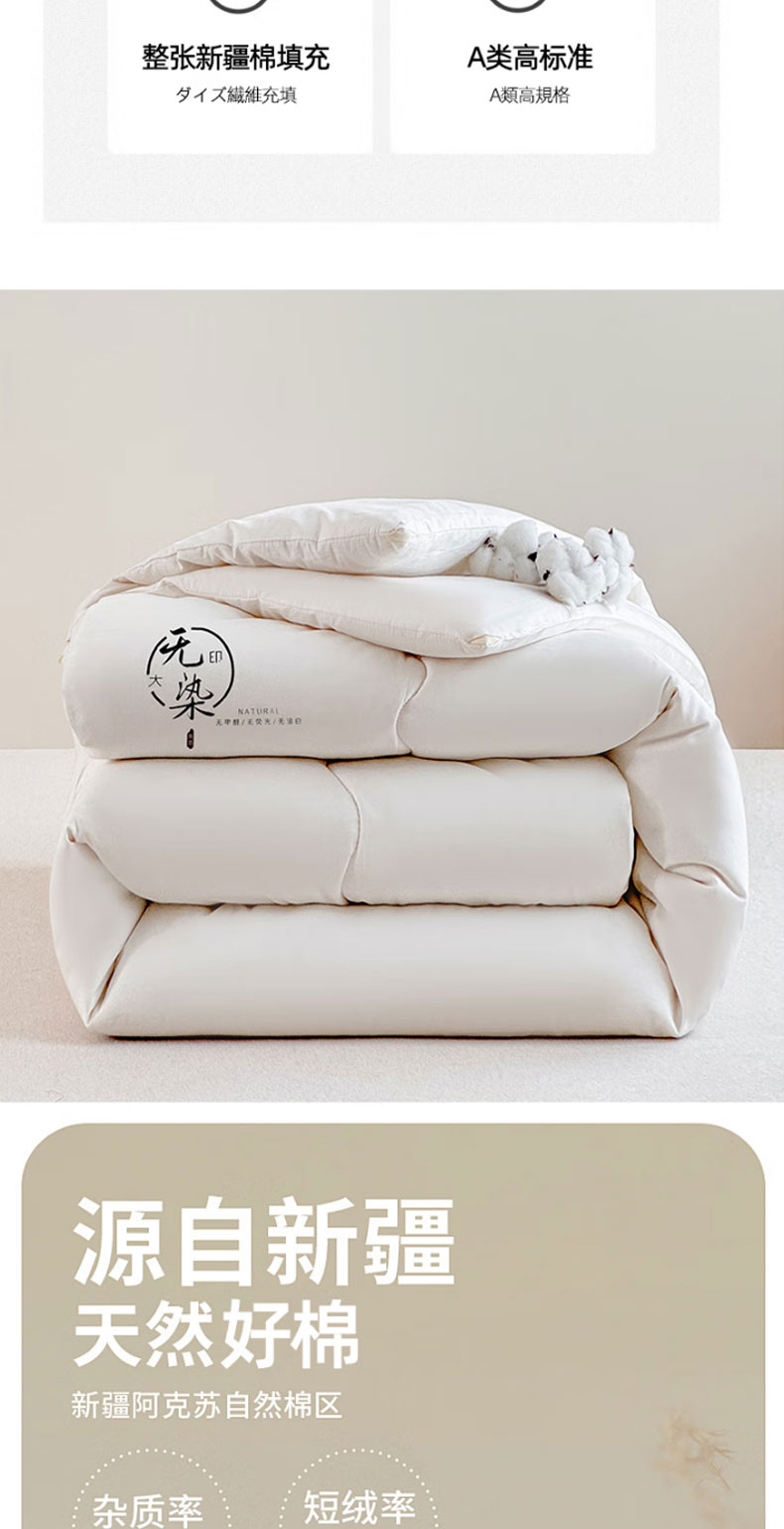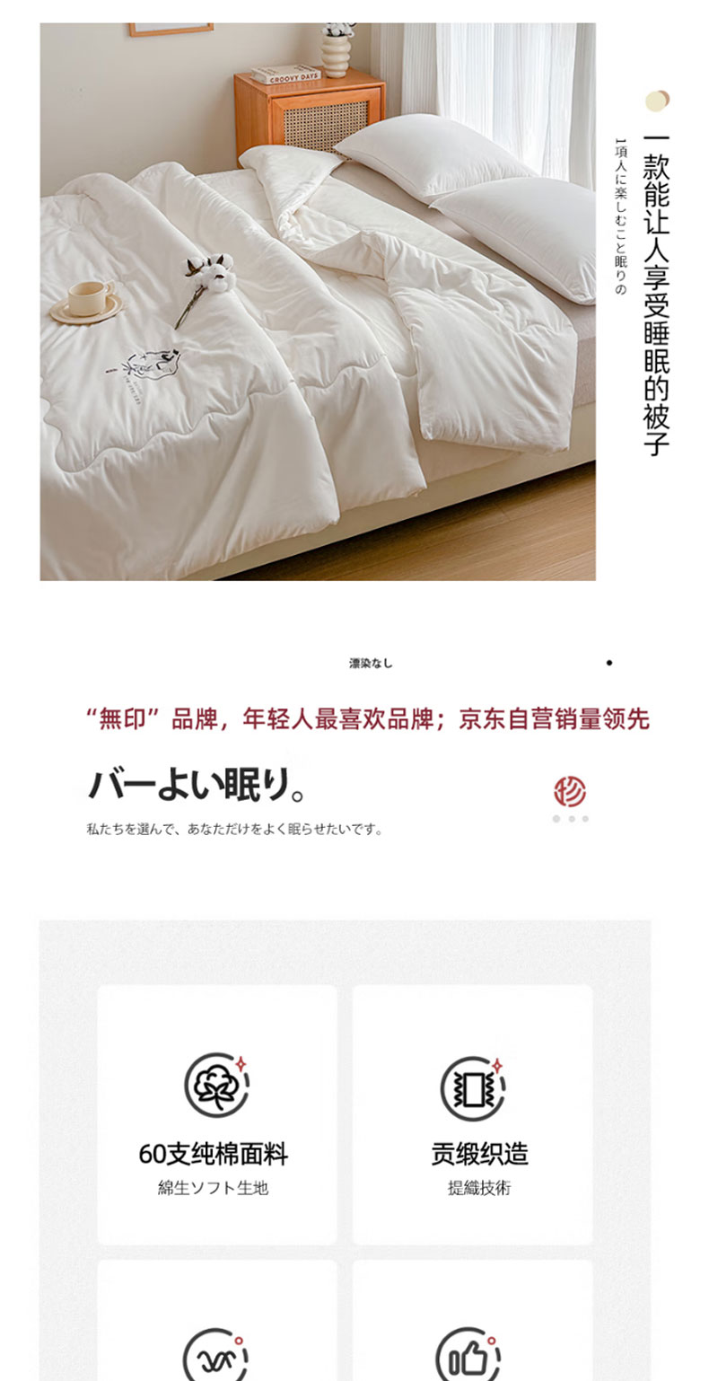 无印良品无染A类抗菌里外全棉棉花冬被200*230cm 2800g