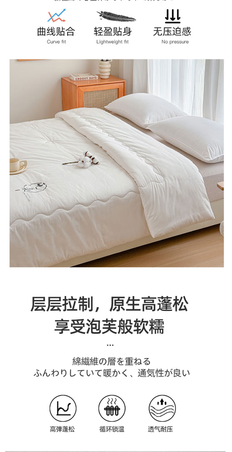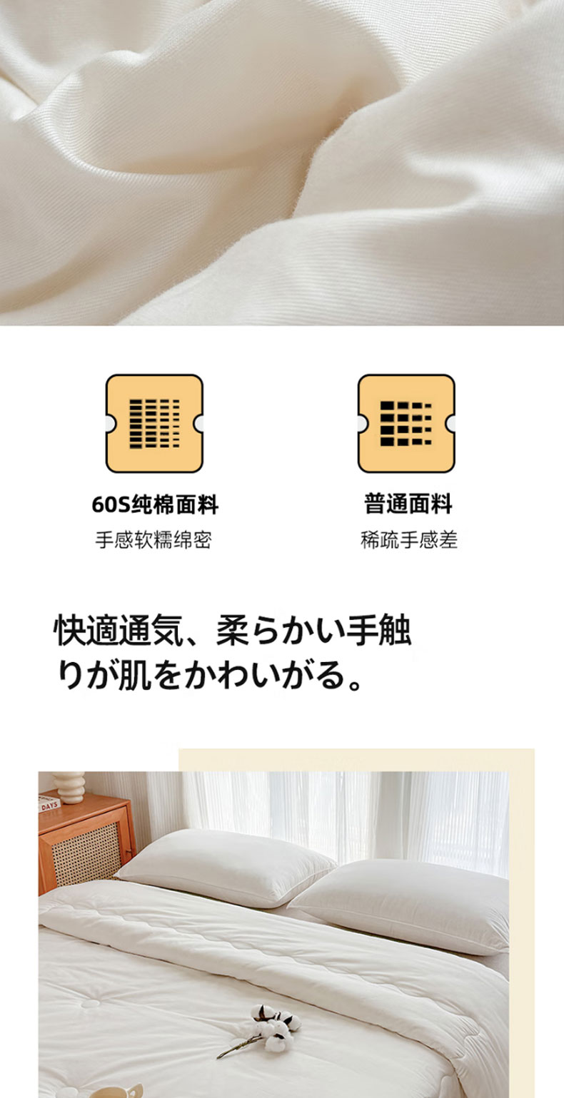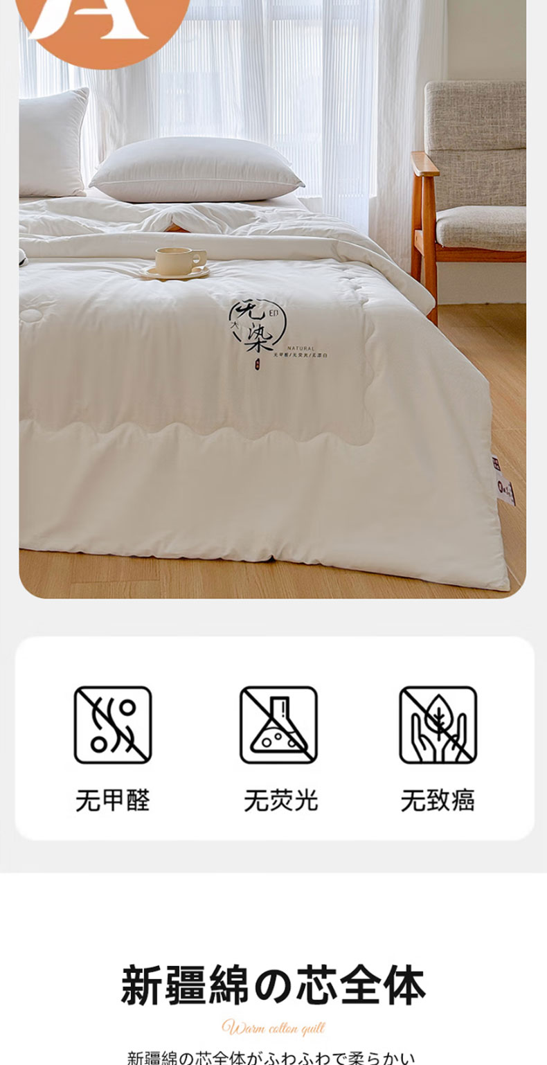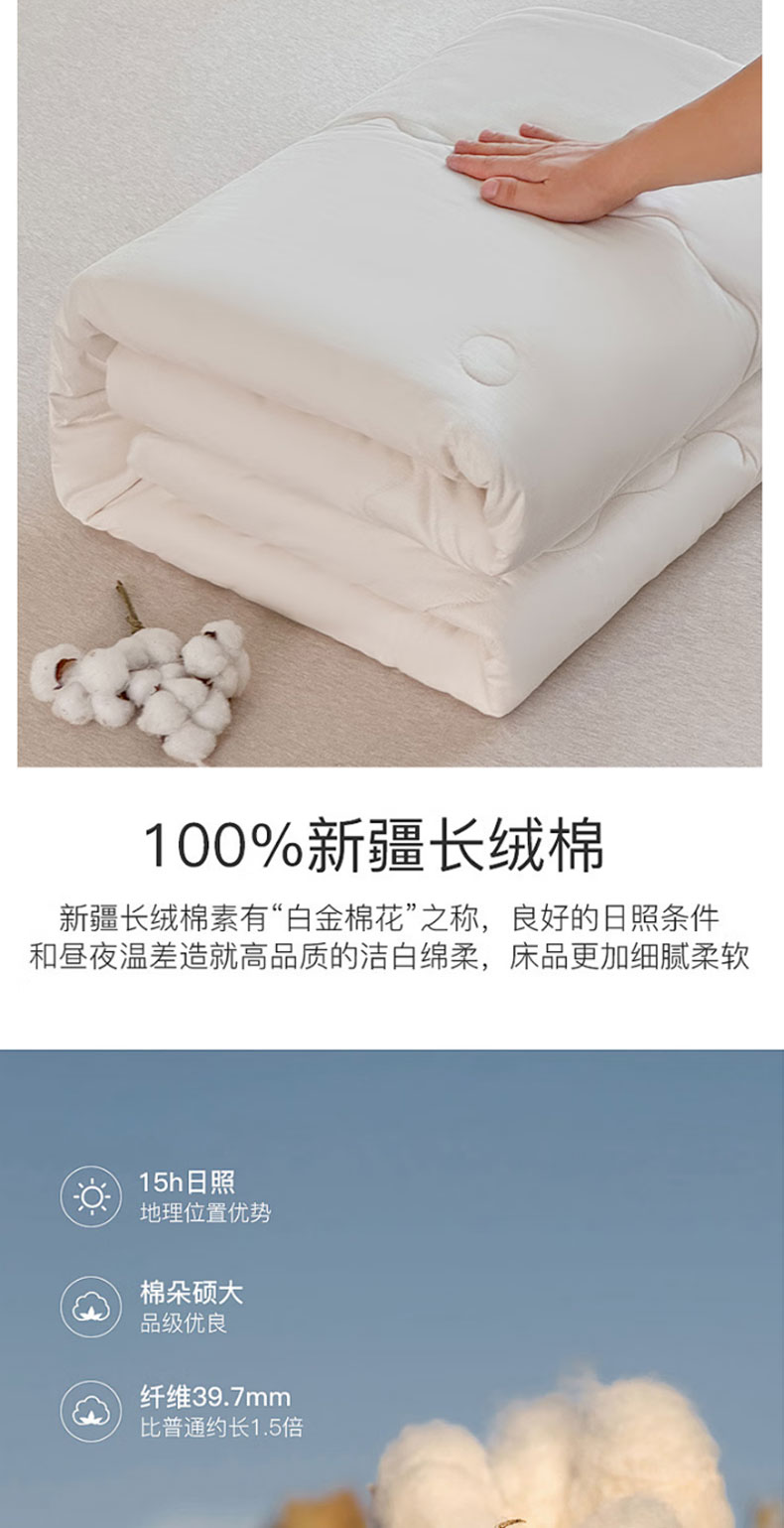 无印良品无染A类抗菌里外全棉棉花冬被200*230cm 2800g