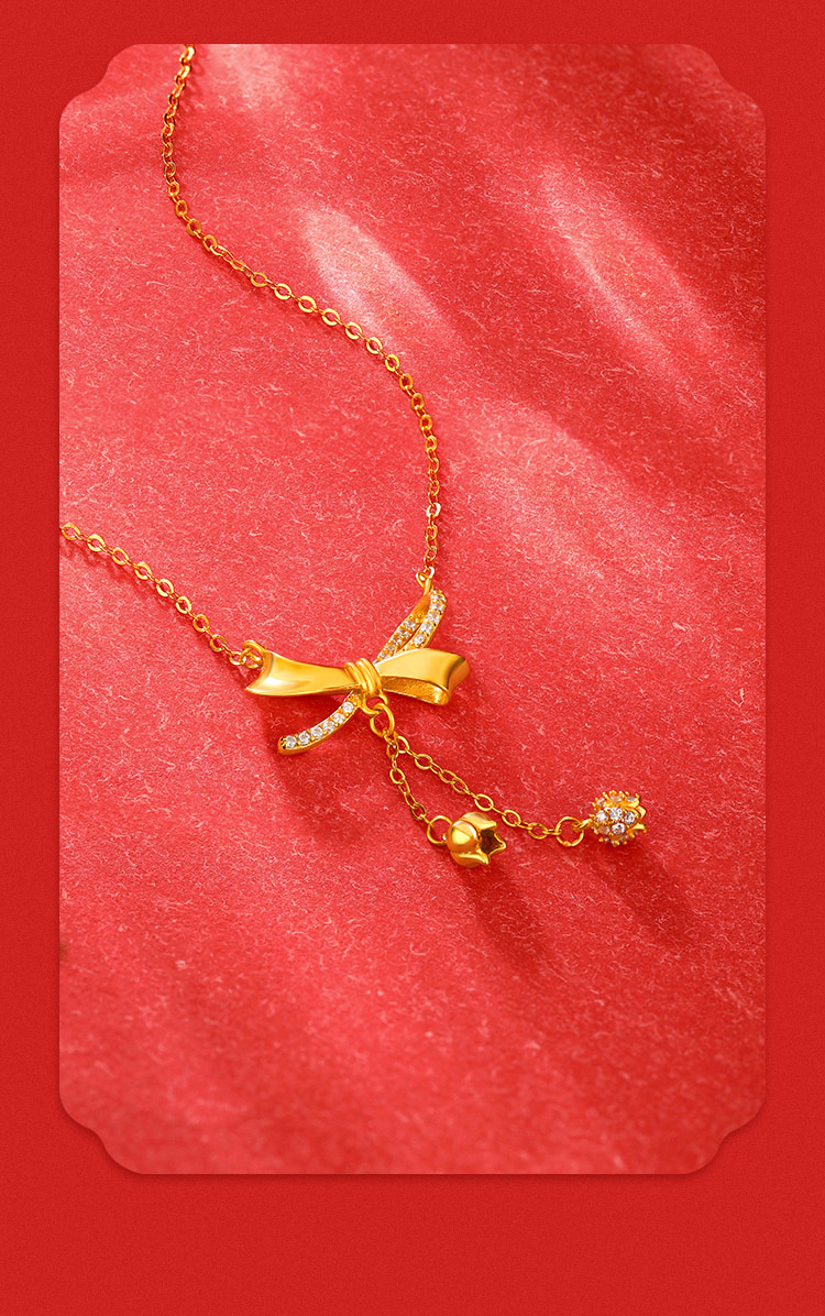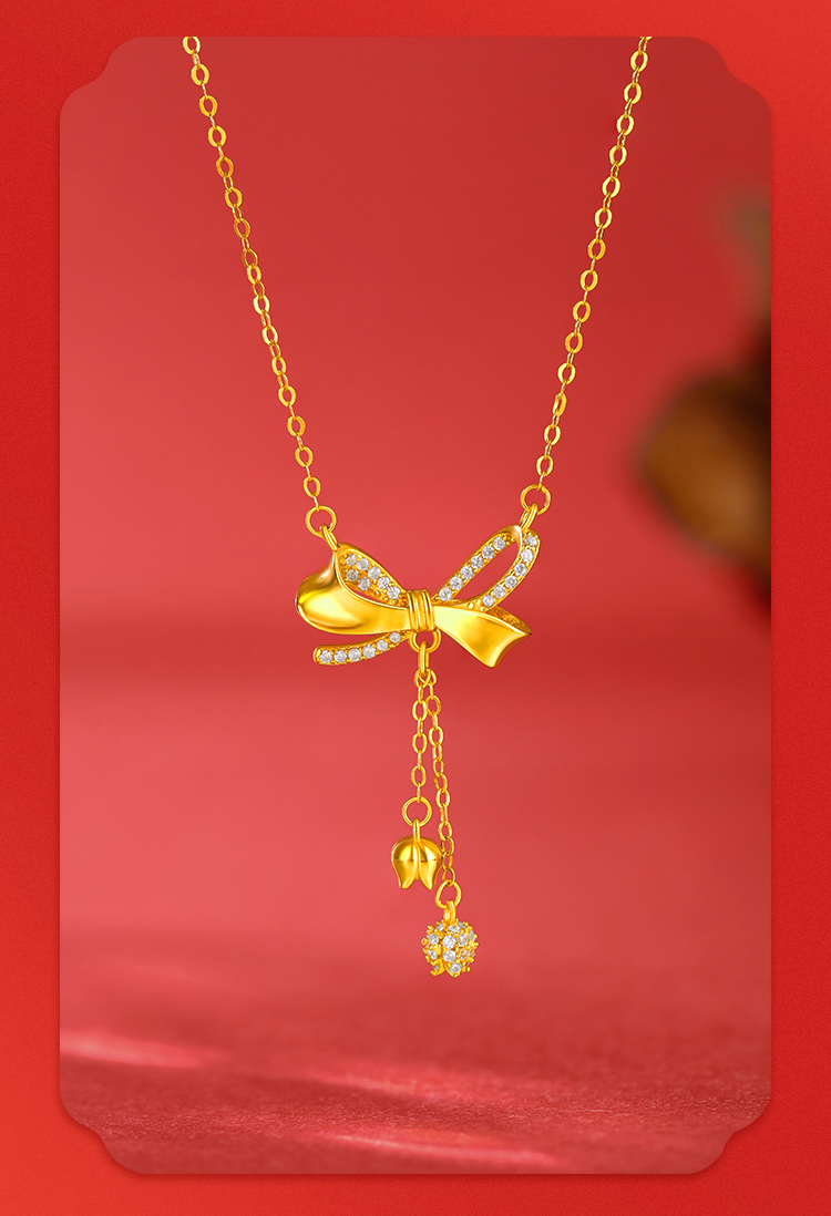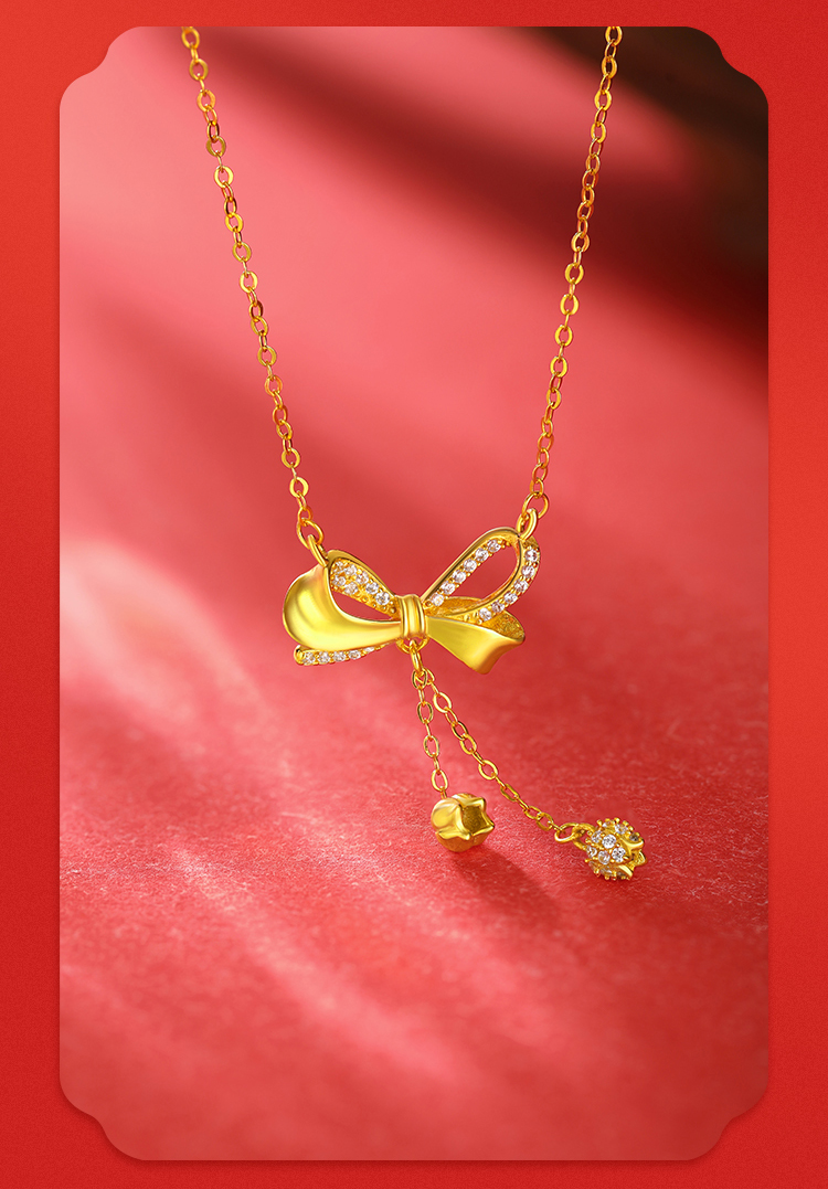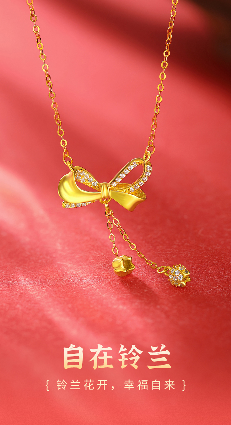 周六福S925银自在铃兰蝴蝶结套链ZLFJ062103