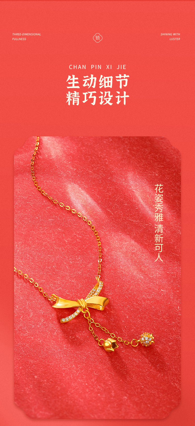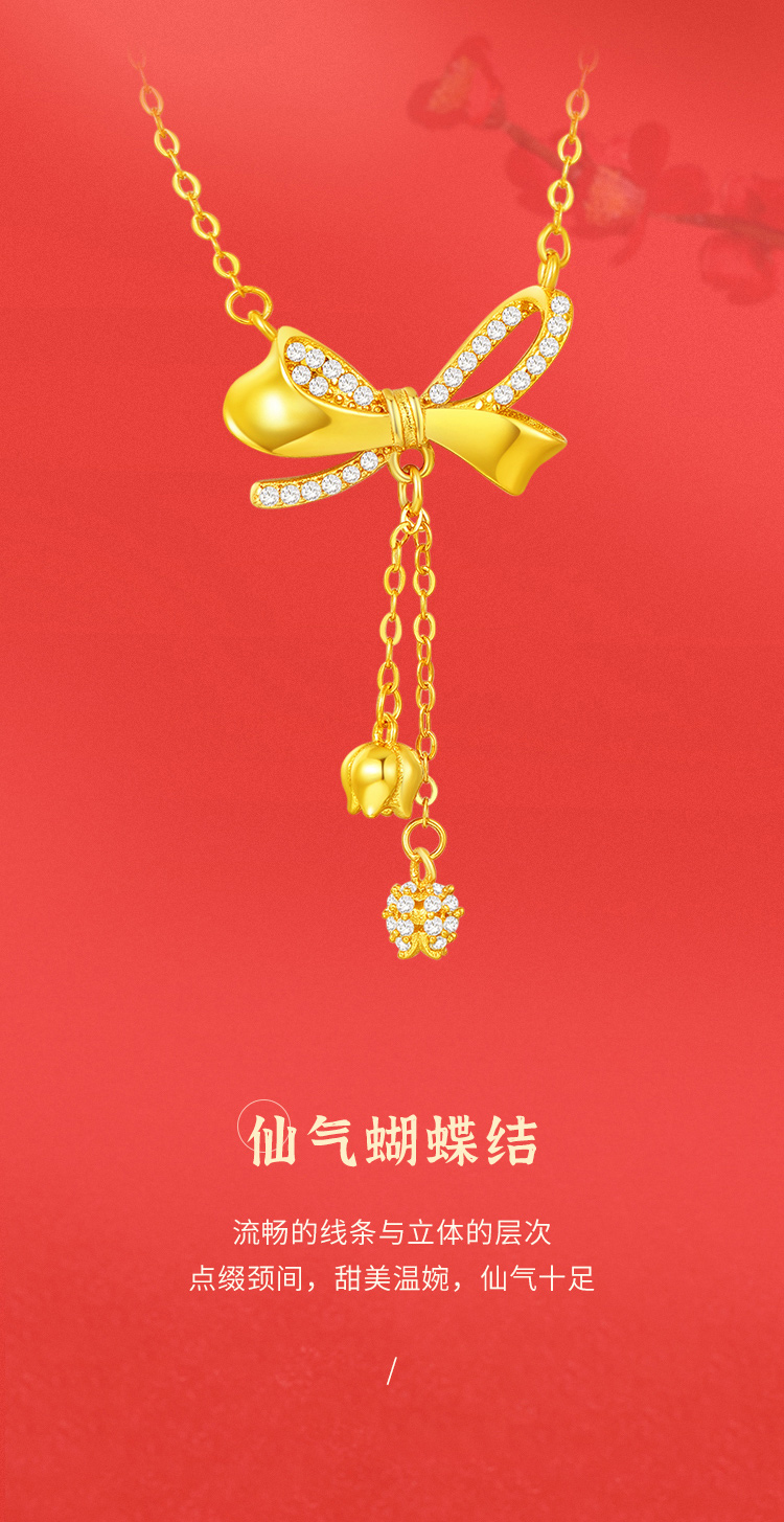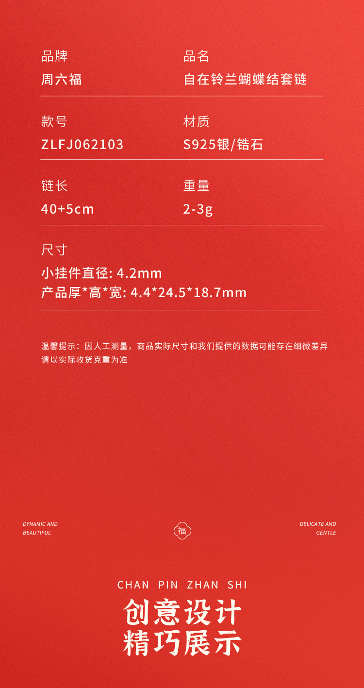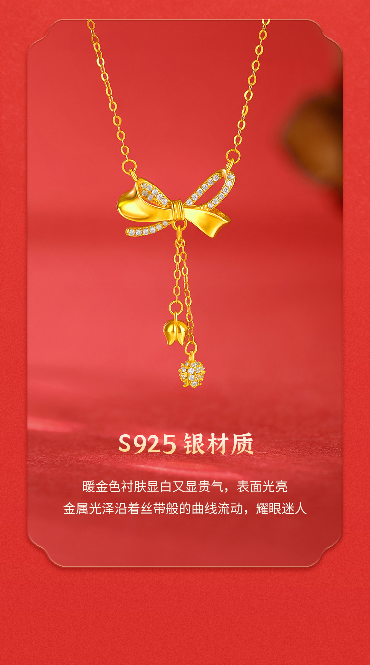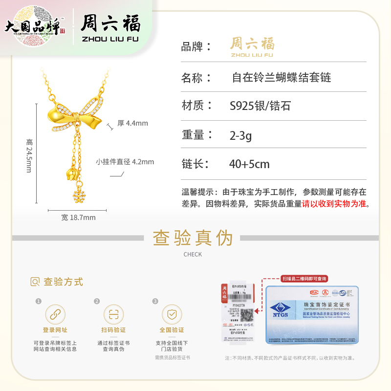 商品名称:周六福S925银自在铃兰蝴蝶结套链ZLFJ062103