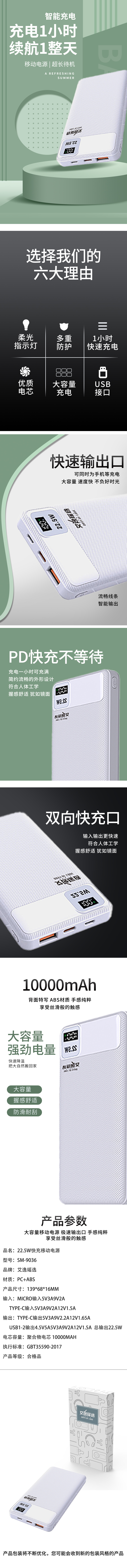 商品名称:艾逸瑶选22.5W快充移动电源SM-9036