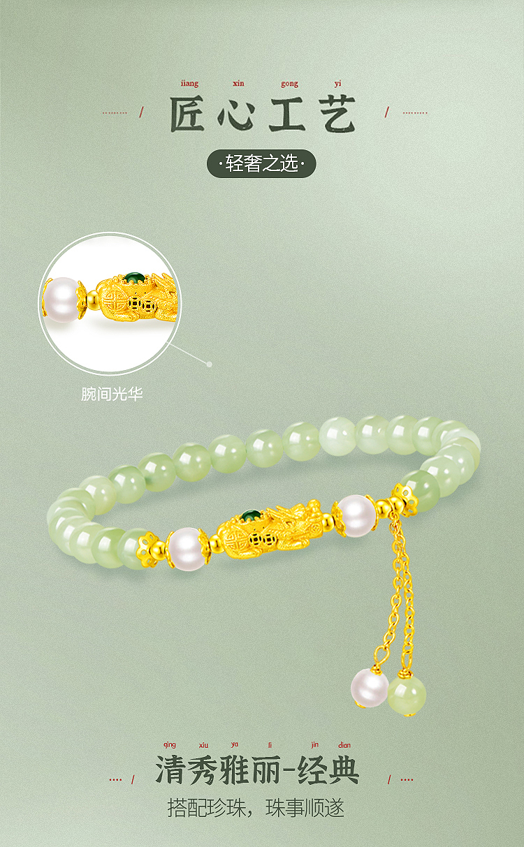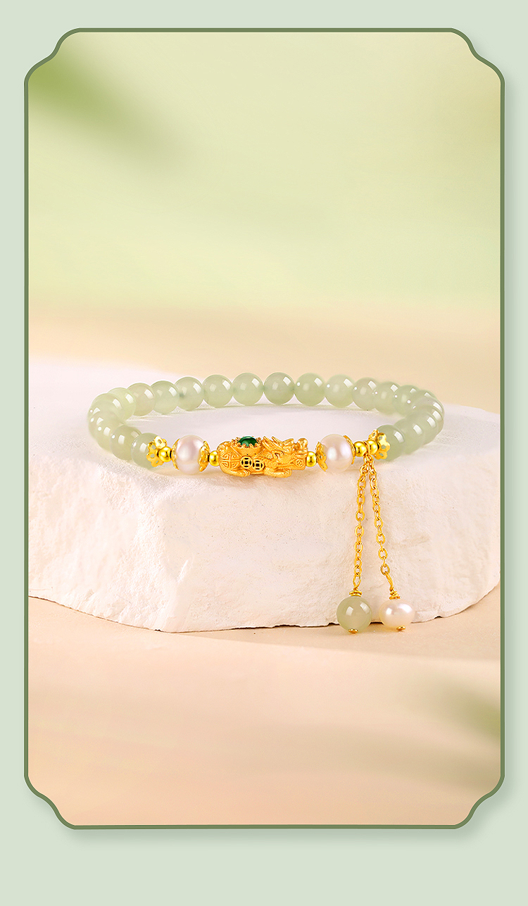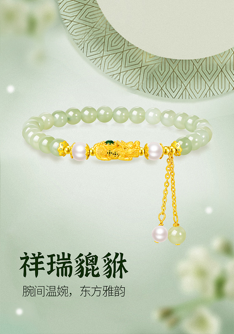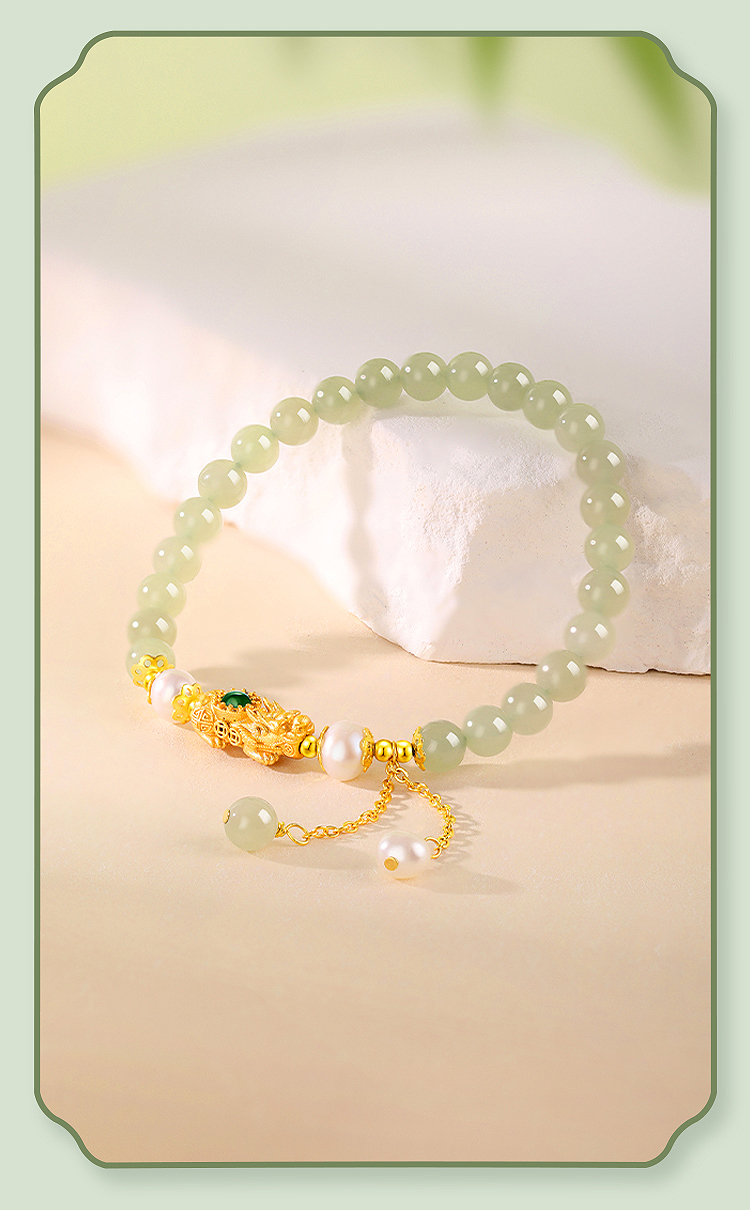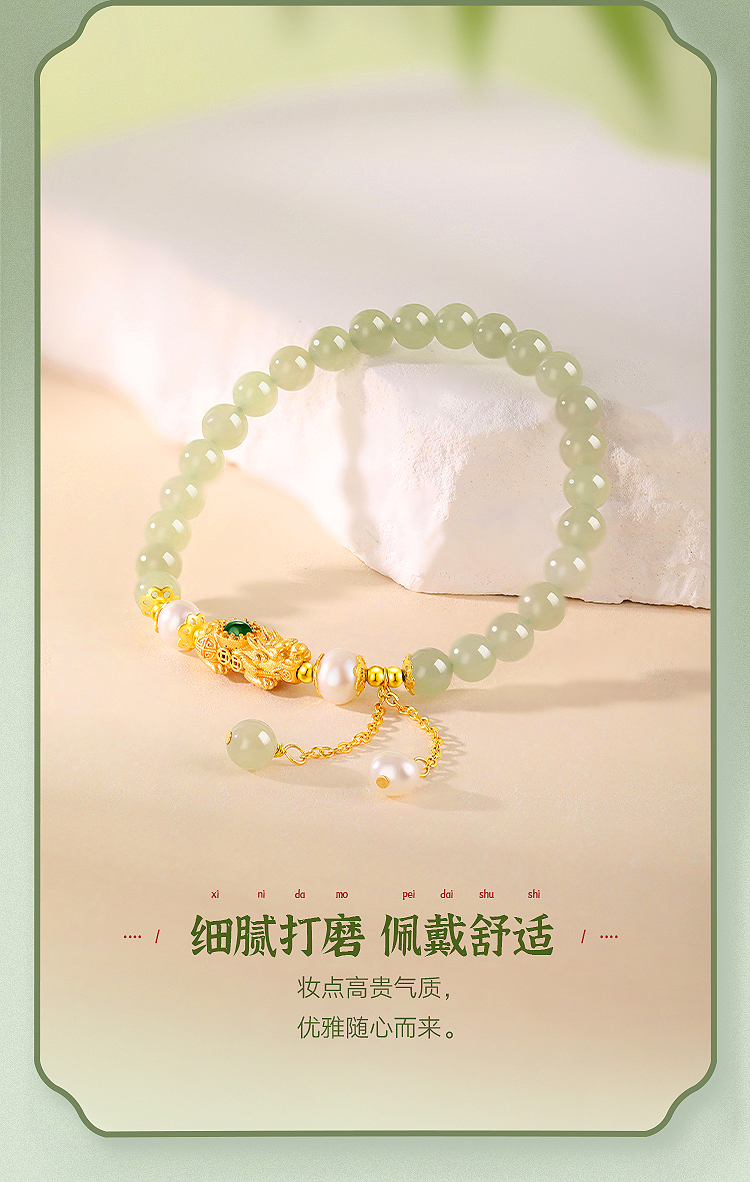商品名称:周六福S925银貔貅转运珍珠和田玉手串ZLFY122082