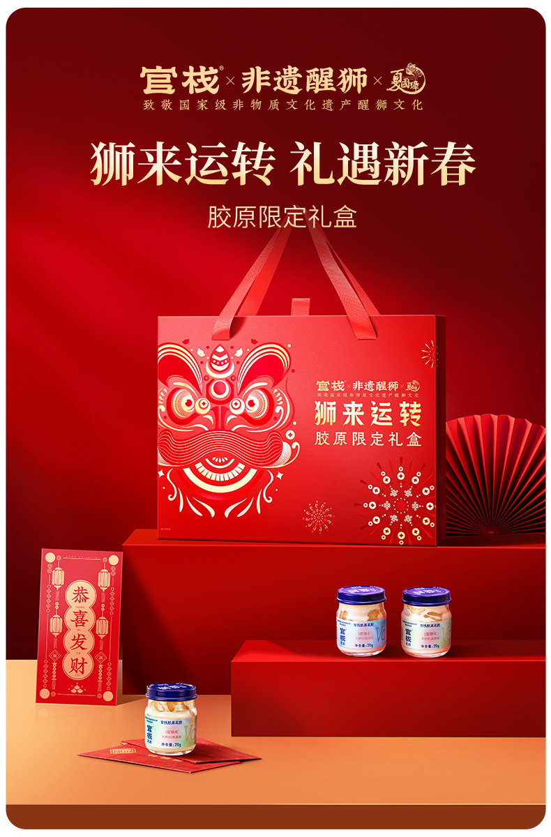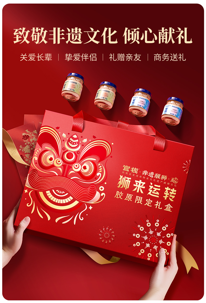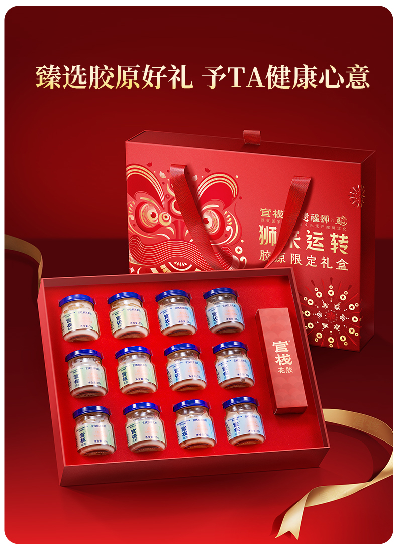 【顺丰配送】官栈x非遗醒狮狮来运转营养胶原花胶礼盒840g