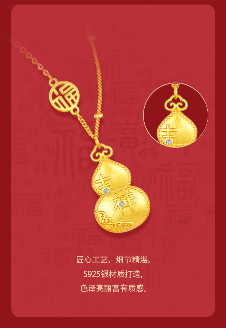 周六福S925银吉祥葫芦和田白玉项链ZLFJ061575
