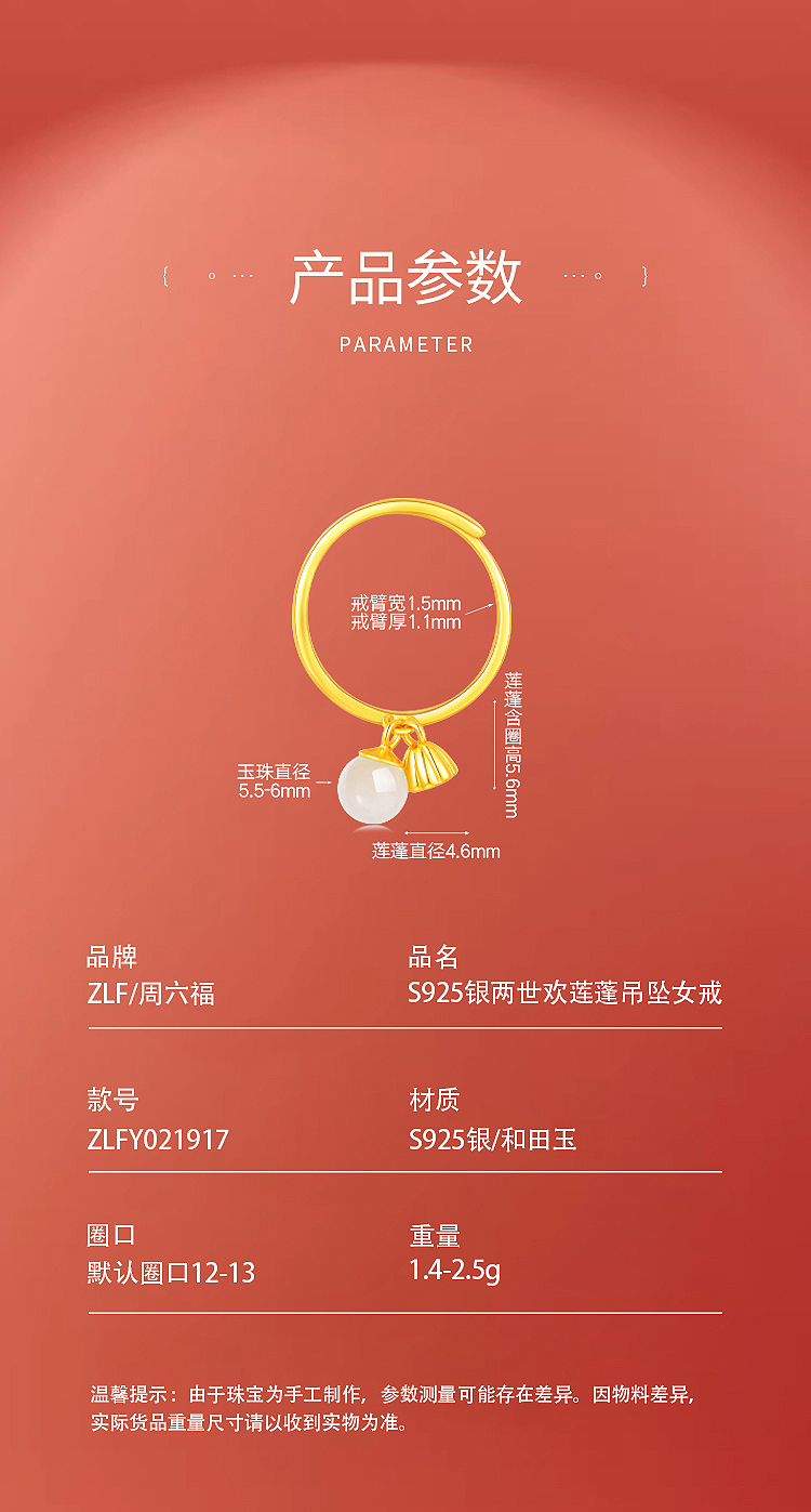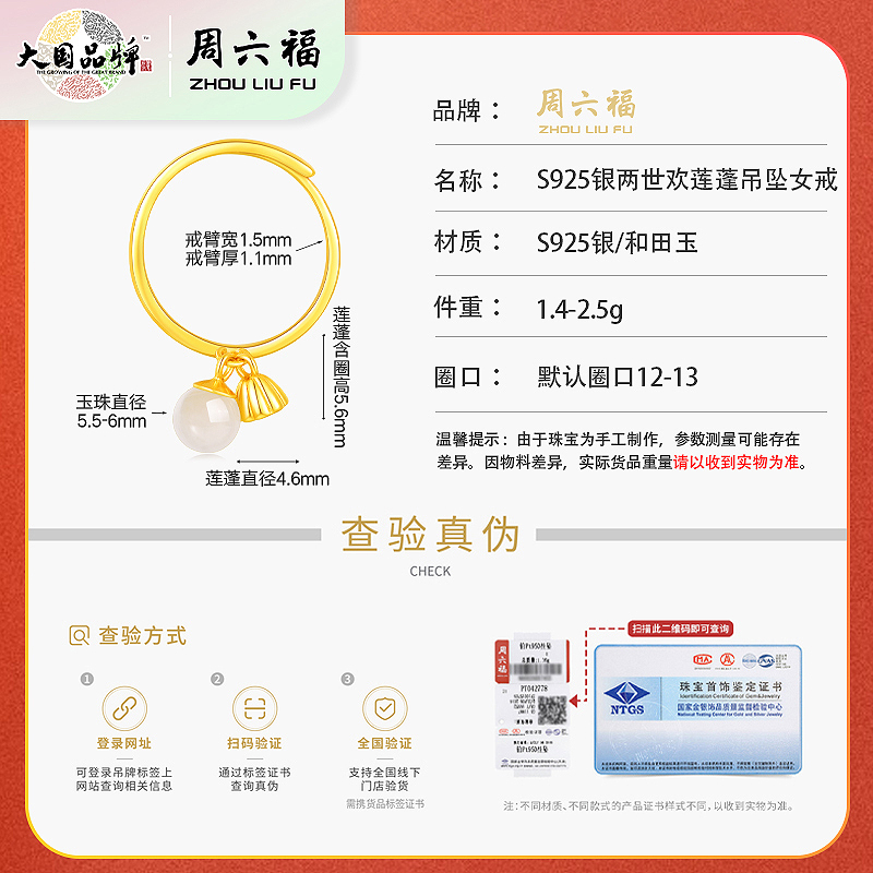 商品名称:周六福S925银两世欢莲蓬吊坠女戒ZLFY021917