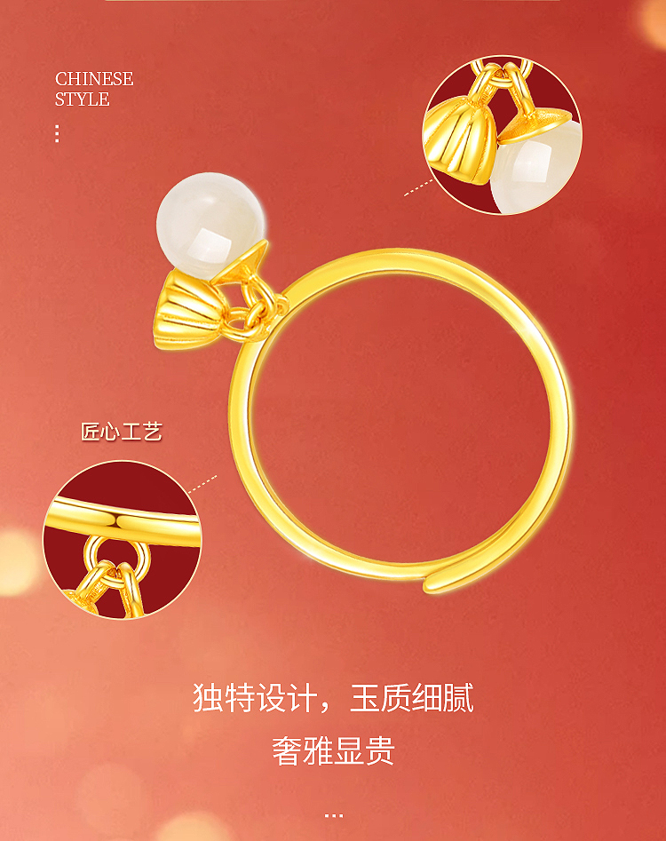 周六福S925银两世欢莲蓬吊坠女戒ZLFY021917