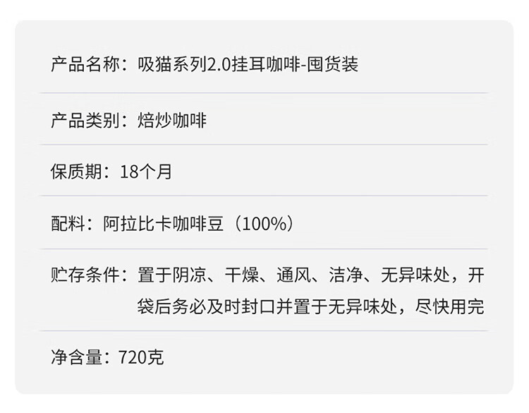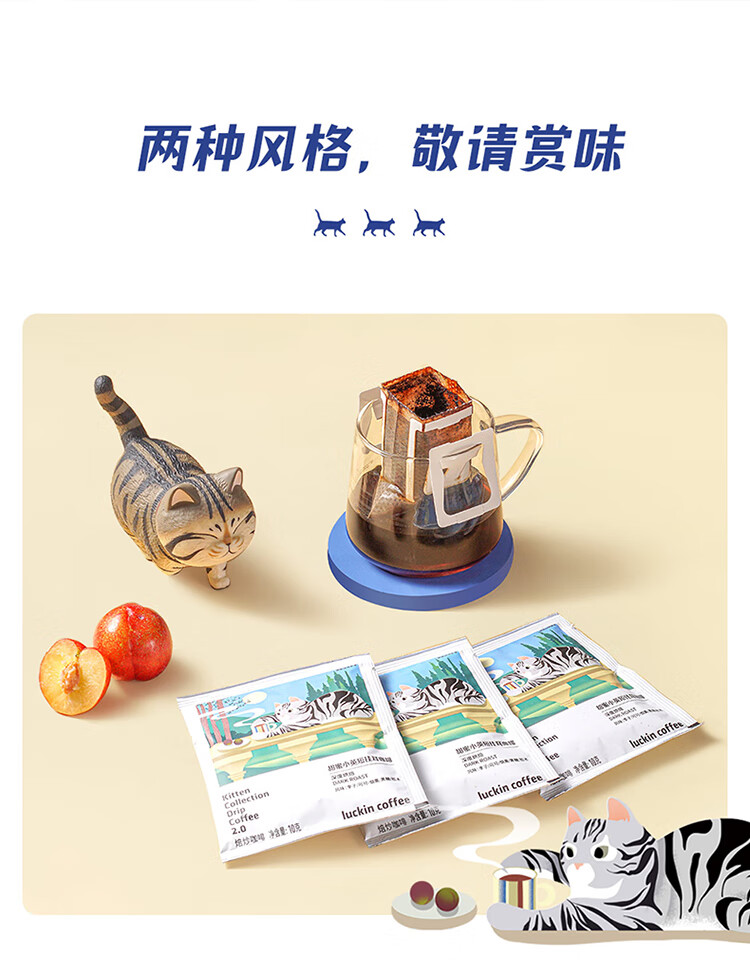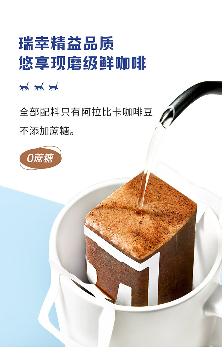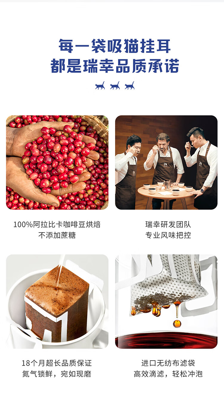 商品名称:luckin coffee/瑞幸咖啡吸猫系列2.0挂耳咖啡囤货混合装72*10g袋RX0041