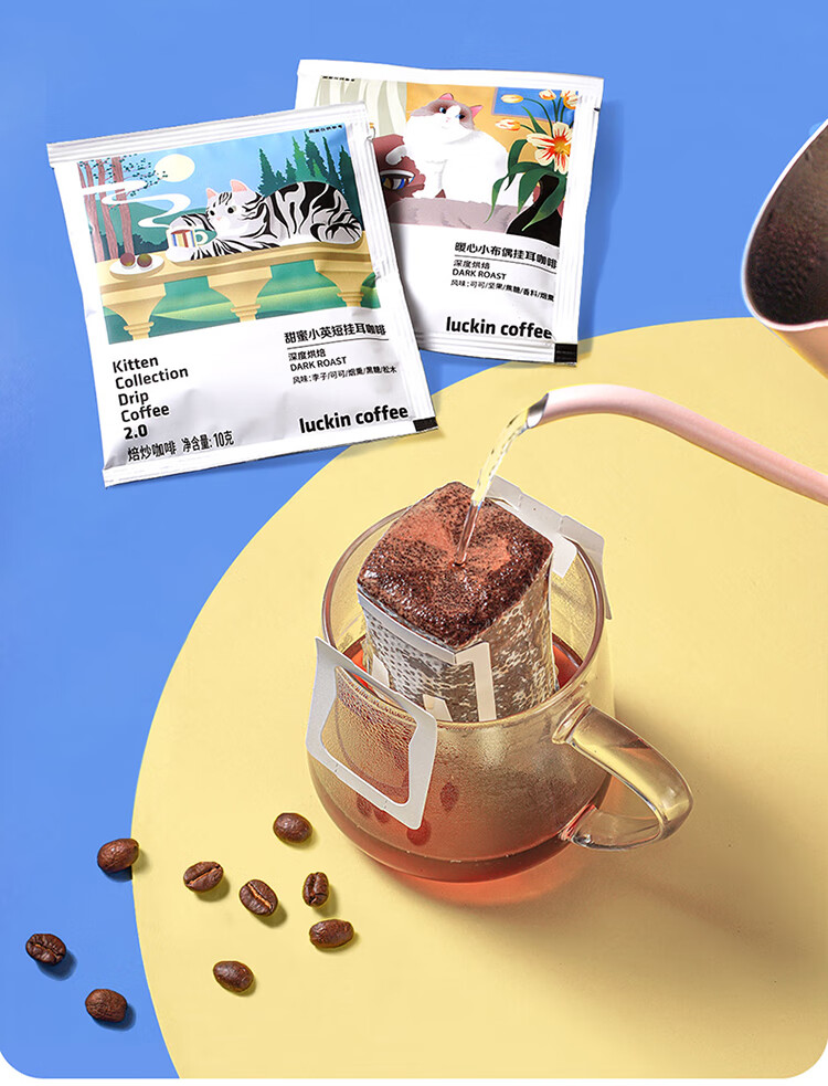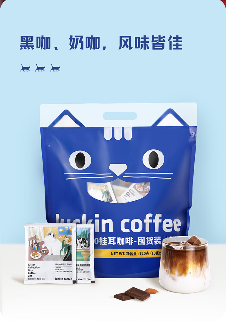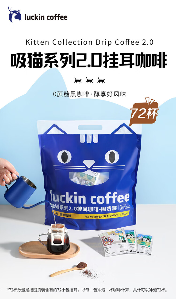 luckin coffee/瑞幸咖啡吸猫系列2.0挂耳咖啡囤货混合装72*10g袋RX0041
