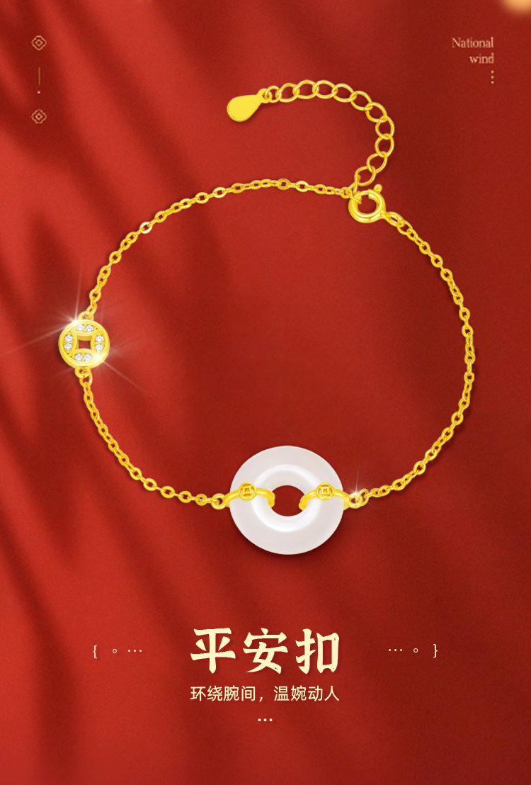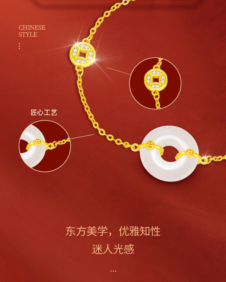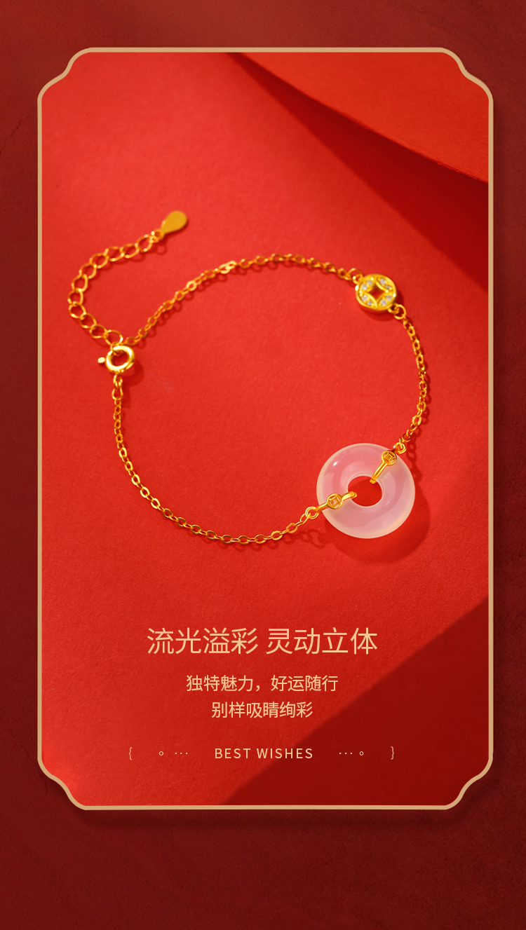 周六福S925银招财平安扣玉髓手链ZLFJ071876