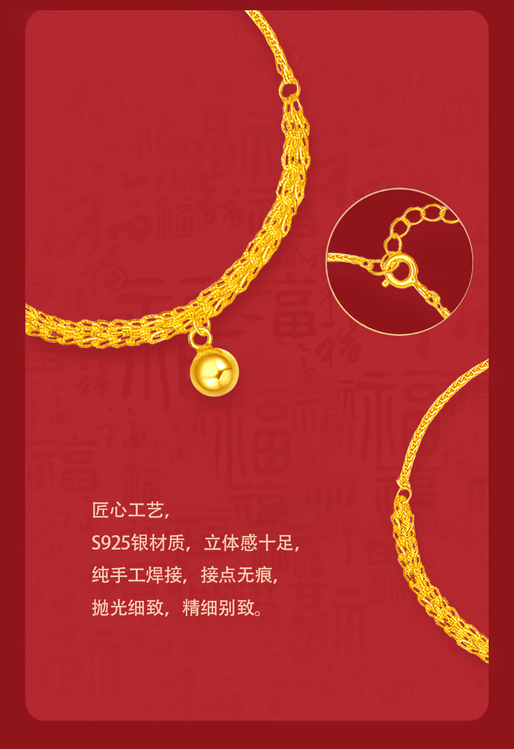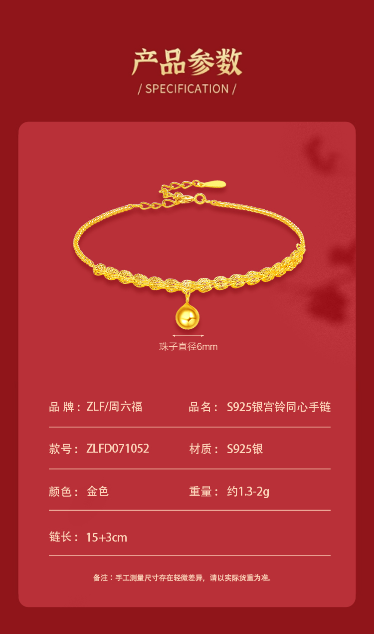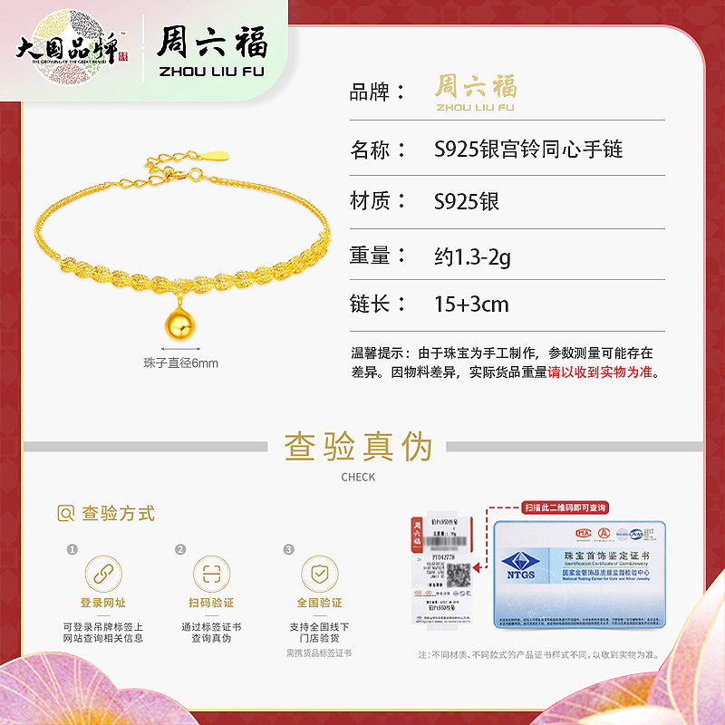 商品名称:周六福S925银宫铃同心手链ZLFD071052