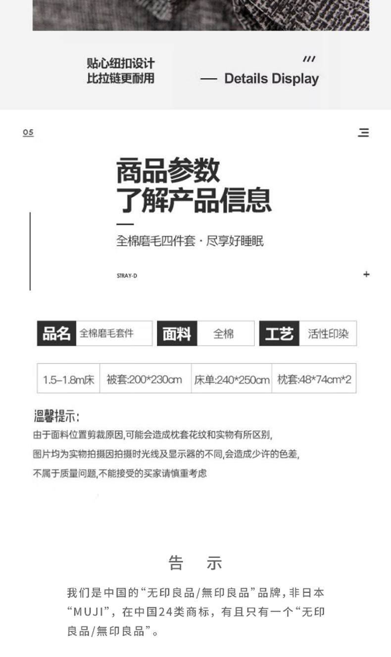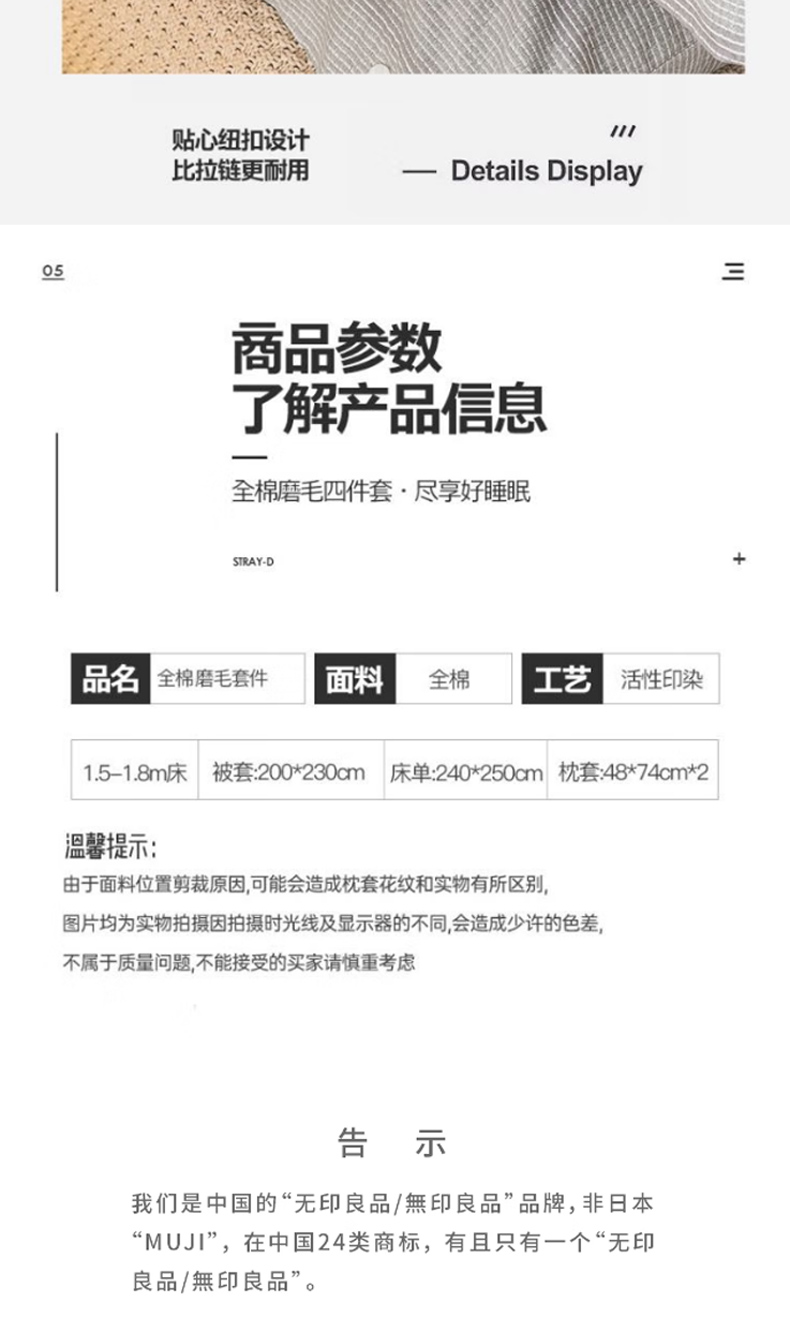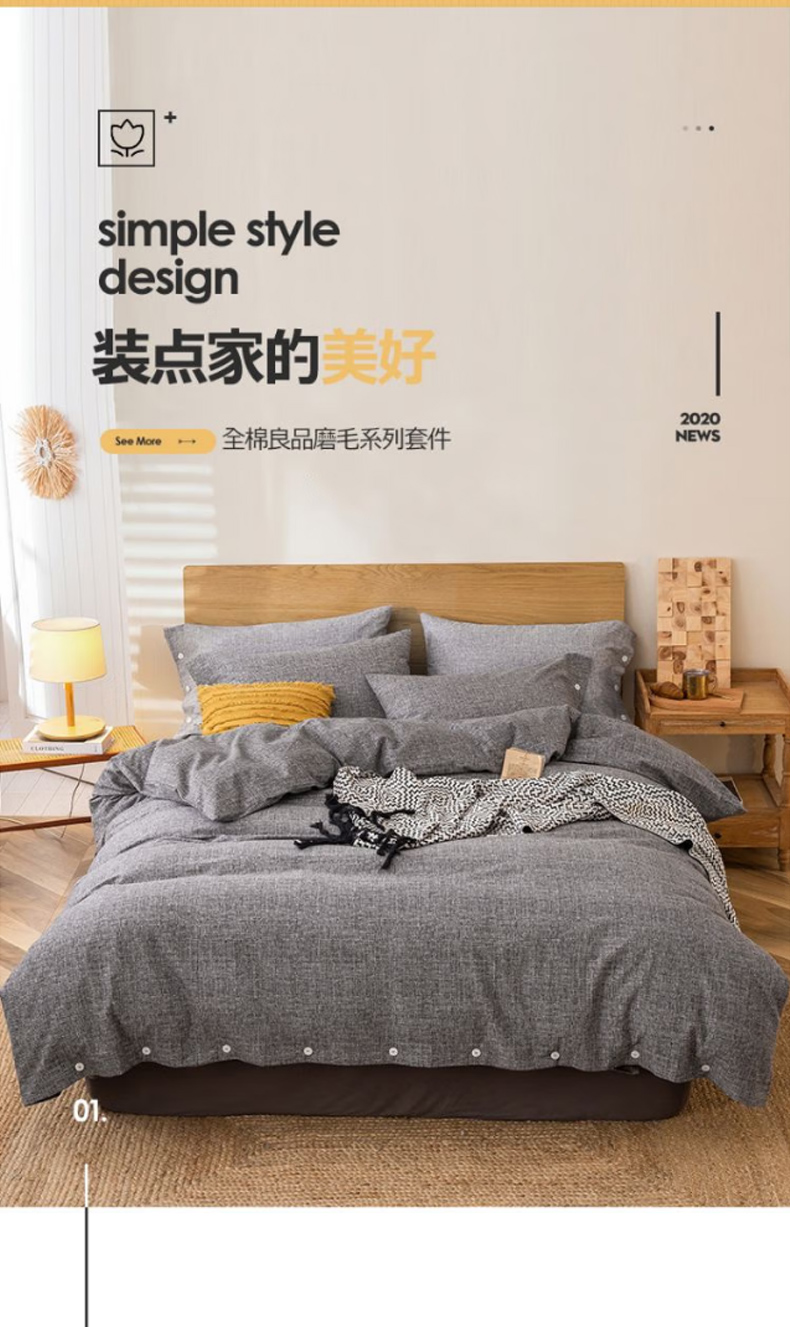 商品名称:无印良品全棉磨毛床品四件套200*230cm