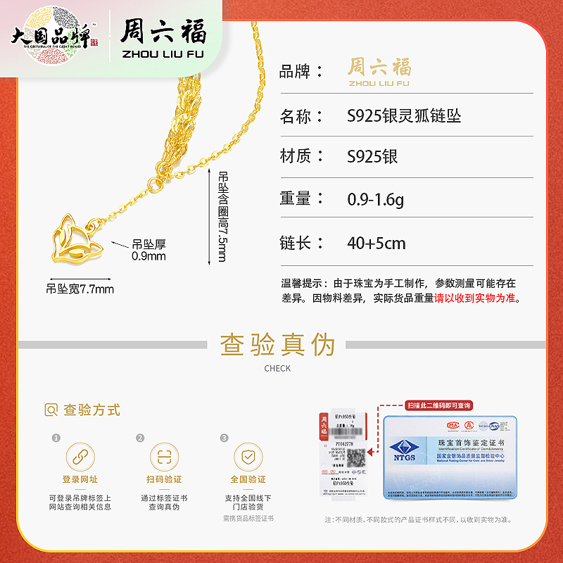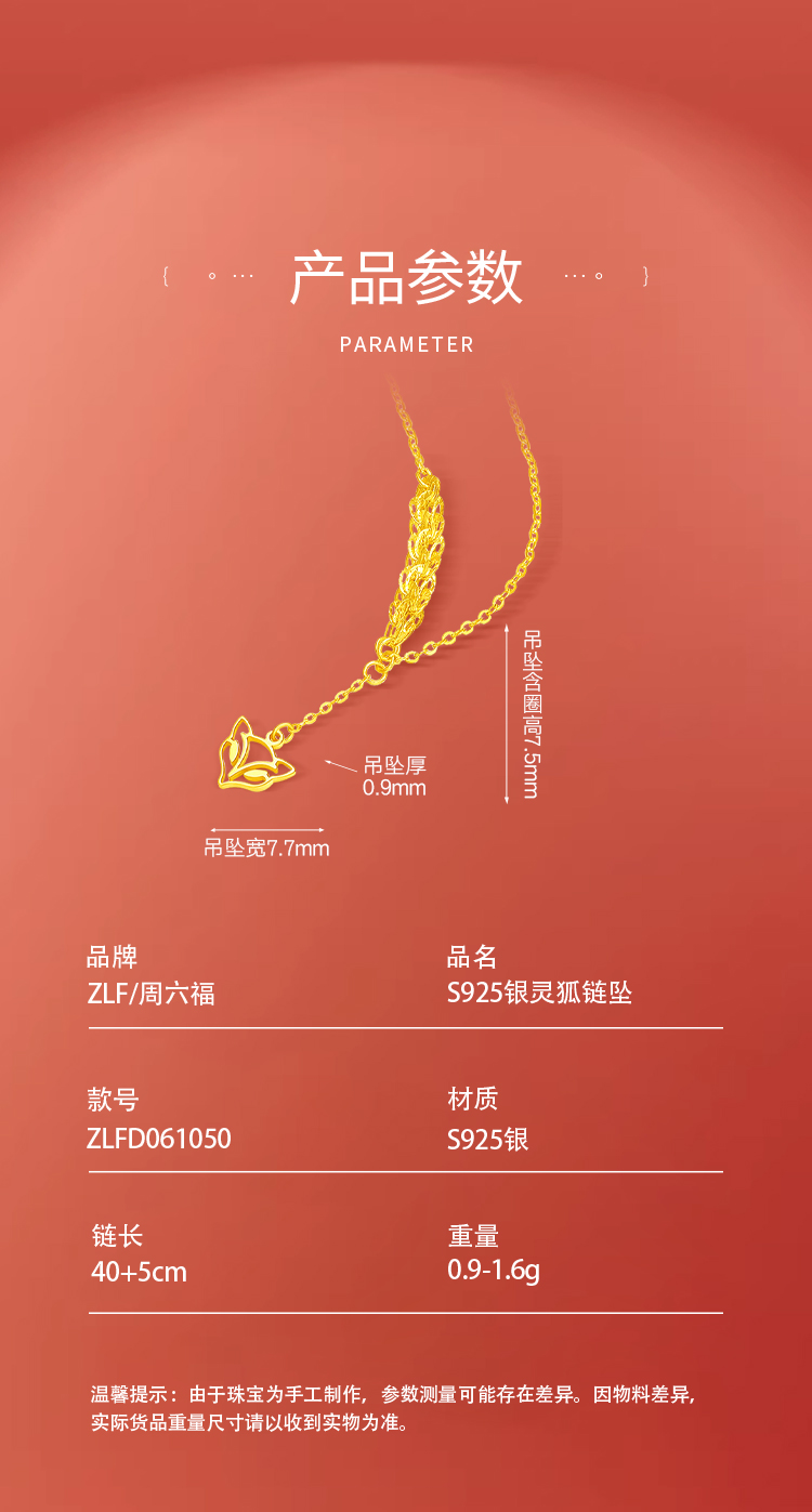 商品名称:周六福S925银灵狐项链ZLFD061050