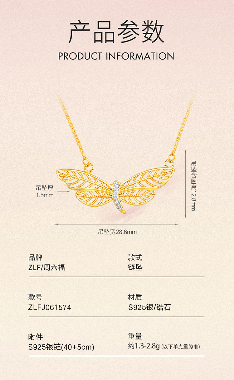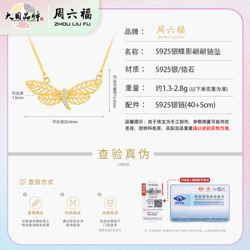 商品名称:周六福S925银蝶影翩翩项链ZLFJ061574