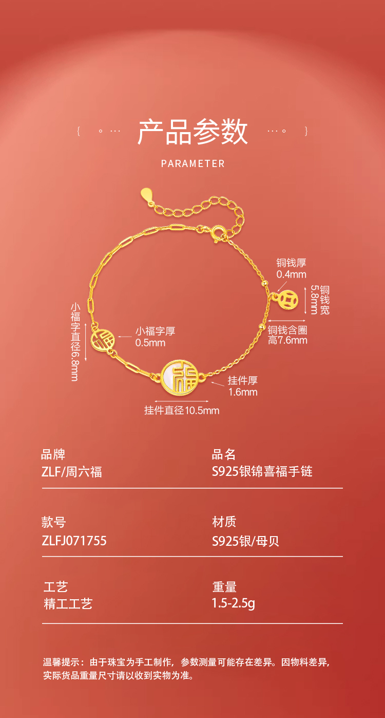 商品名称:周六福S925银锦喜福手链ZLFJ071755