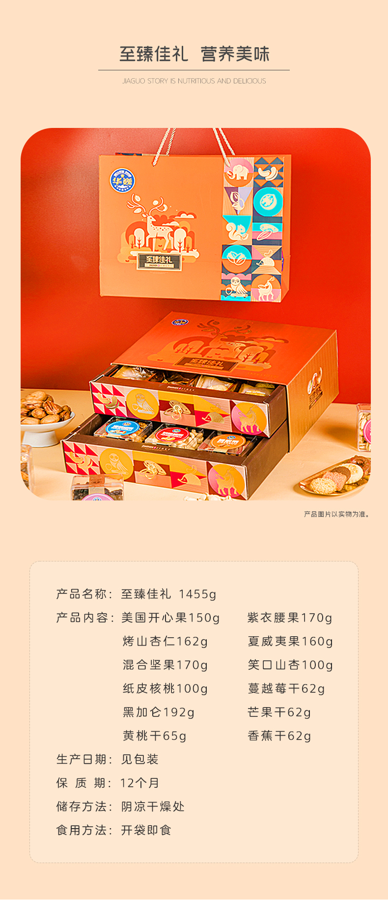 商品名称:HUAWEI FOOD/华巍至臻佳礼坚果果干礼盒1455g