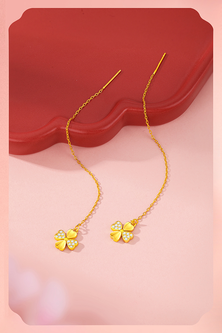 周六福S925银晨曦四叶草耳线ZLFJ091989