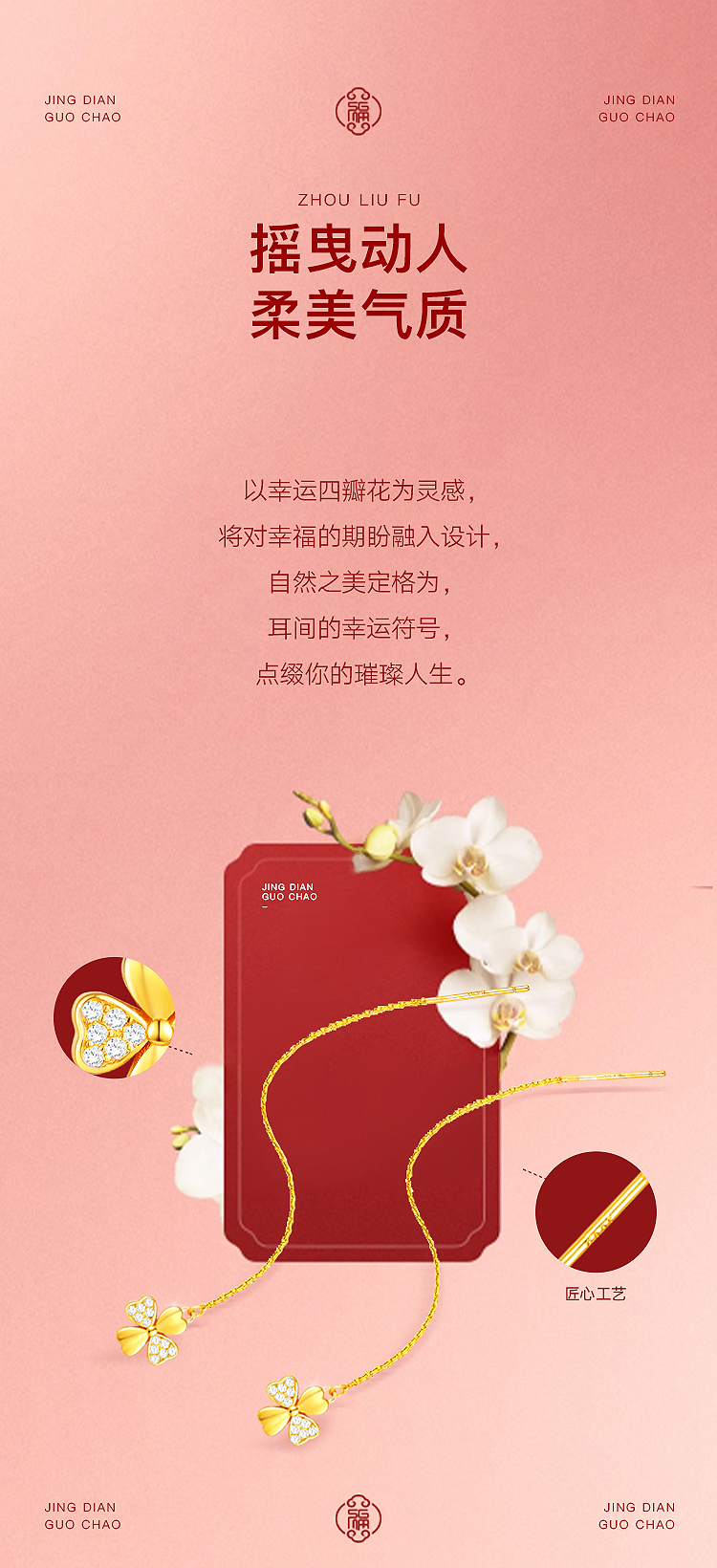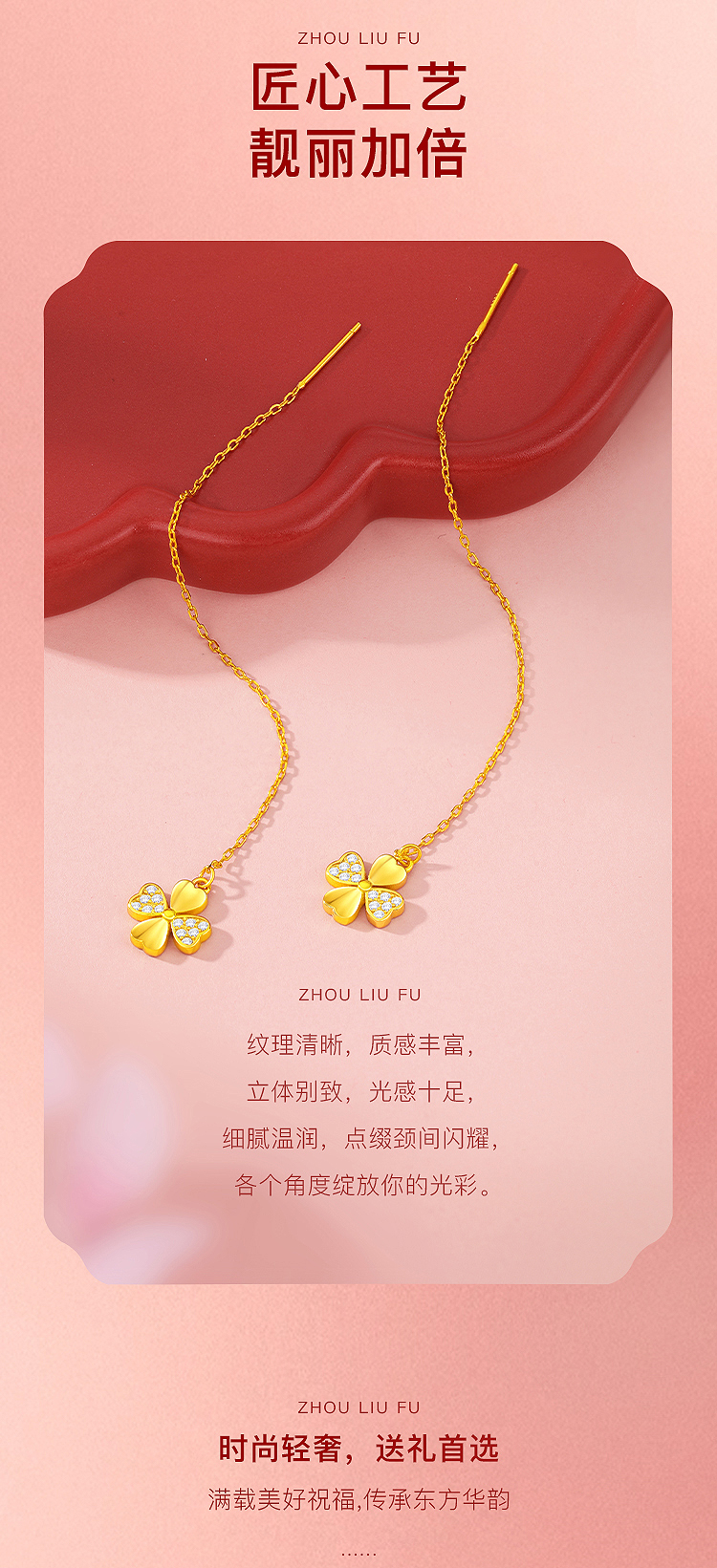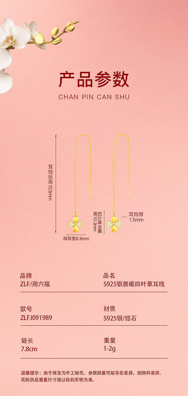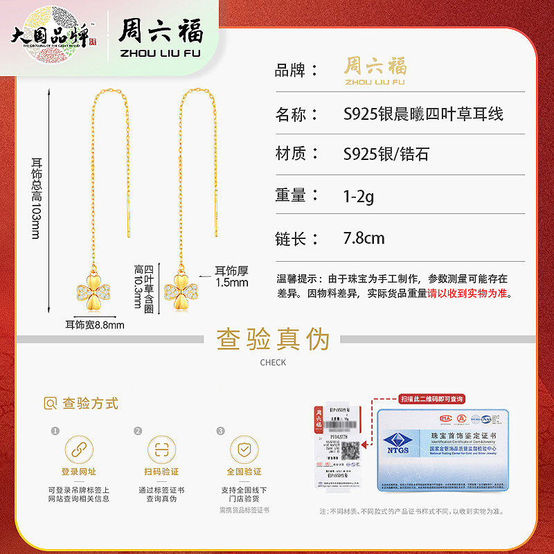 商品名称:周六福S925银晨曦四叶草耳线ZLFJ091989