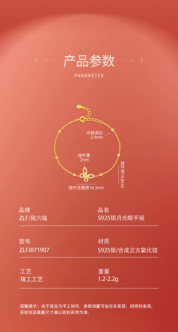 商品名称:周六福S925银月光蝶手链ZLFJ071907