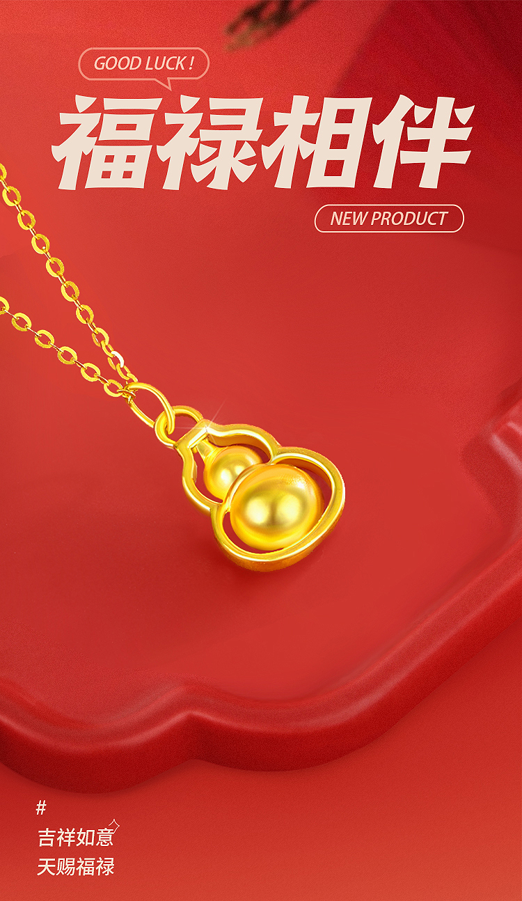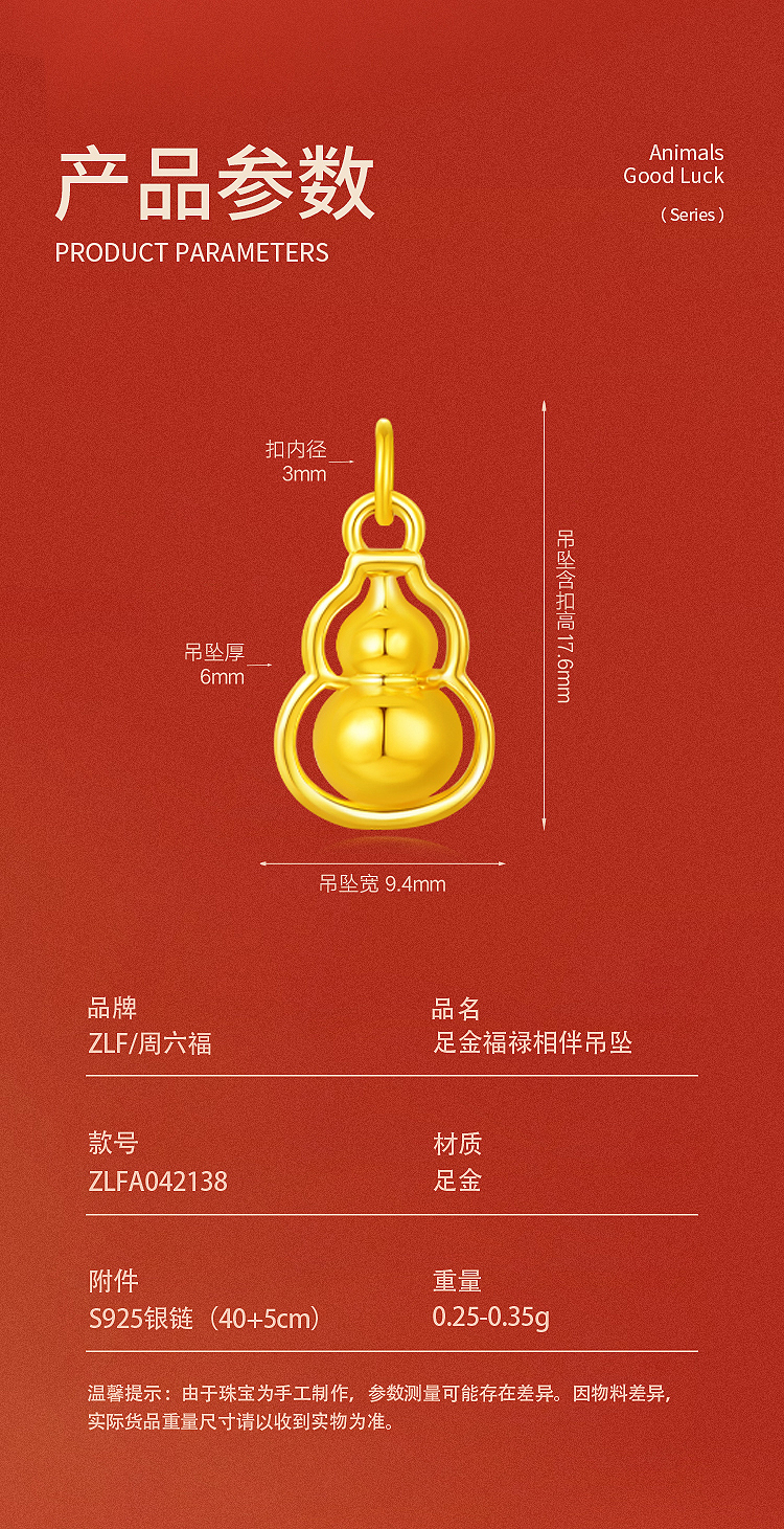 商品名称:周六福足金福禄相伴吊坠ZLFA042138