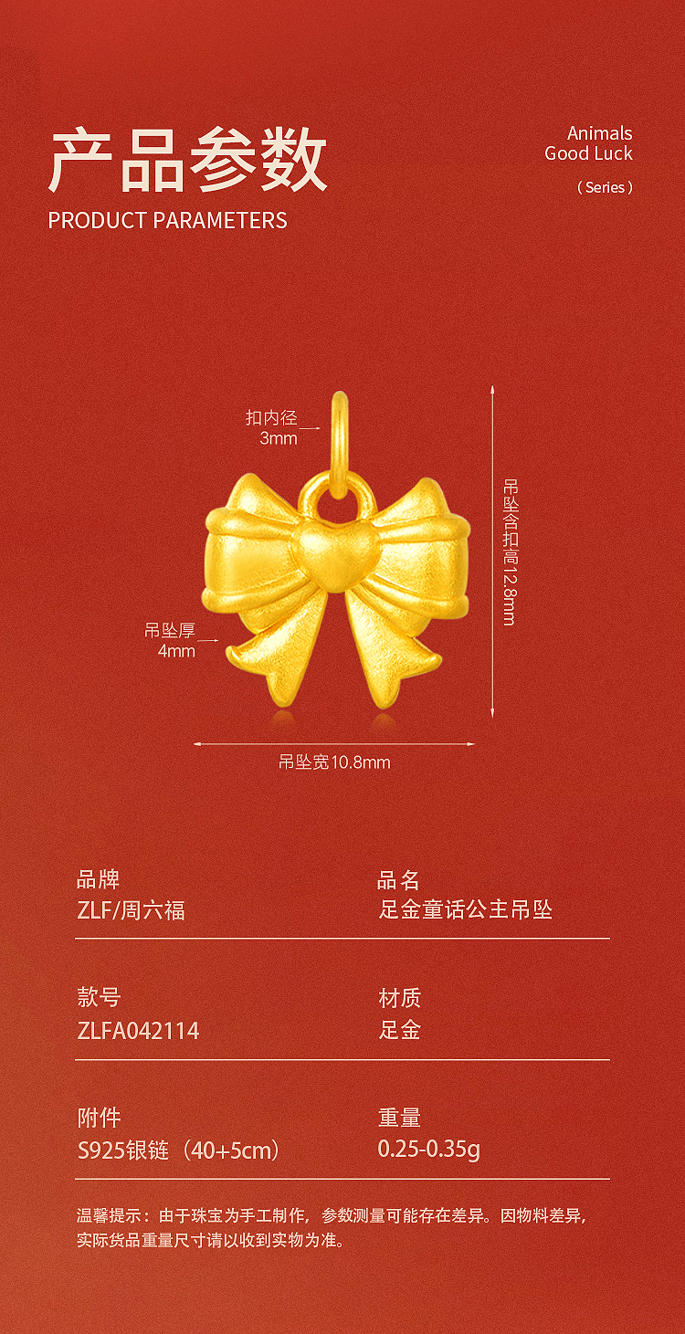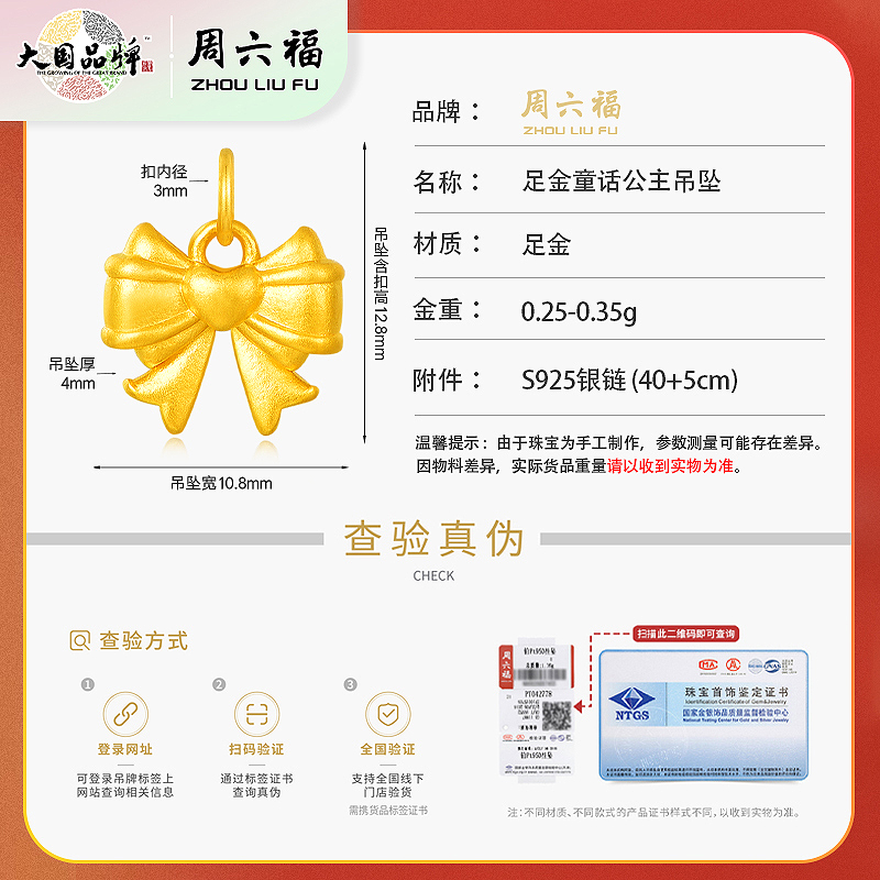 商品名称:周六福5D硬金童话公主吊坠ZLFA042114