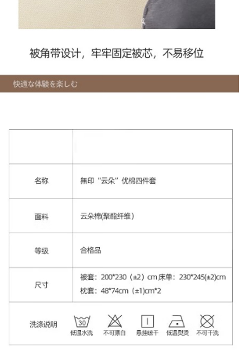 商品名称:无印良品云朵优棉床品四件套200*230cm